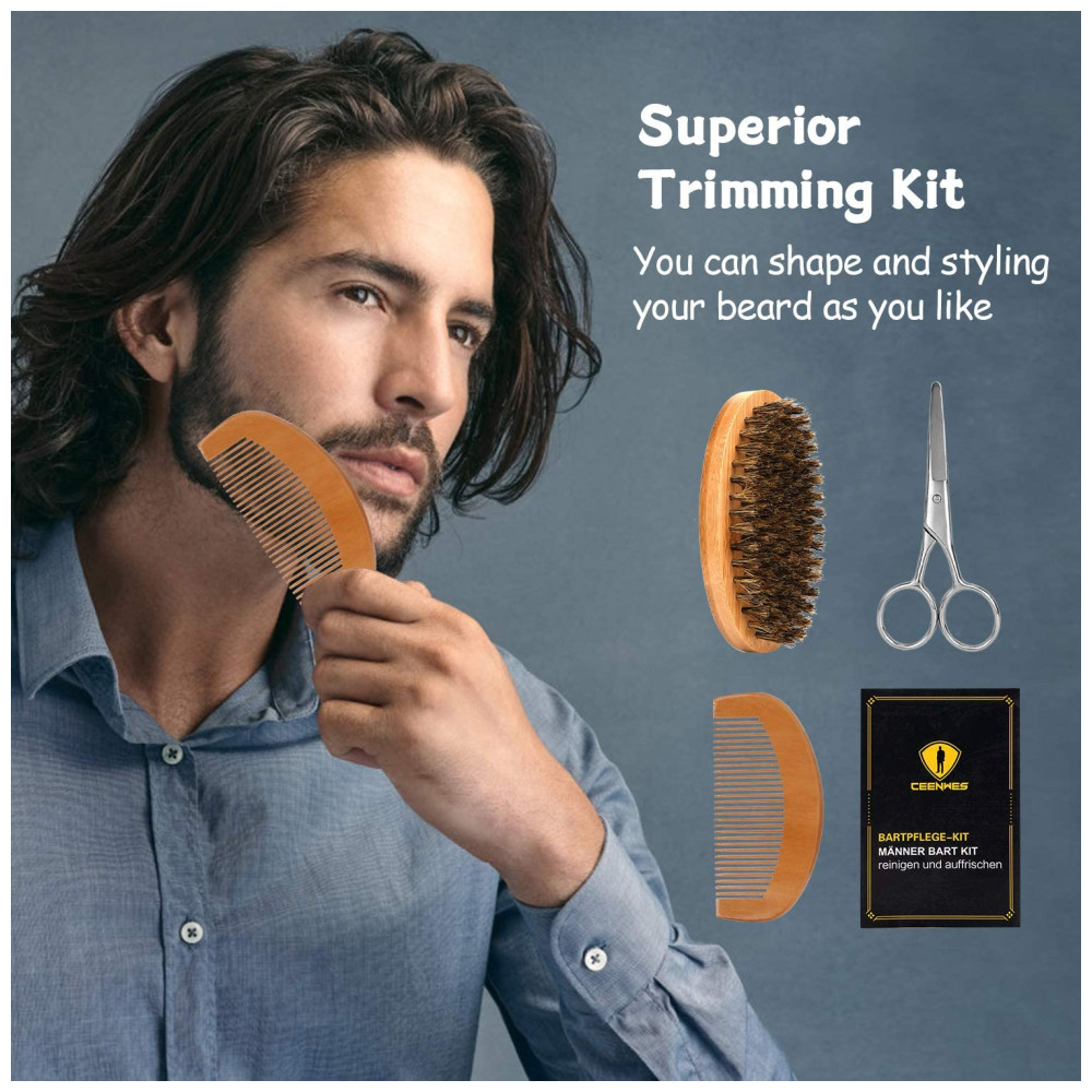 Kit para Barba Profissional Portátil com Cera e Pente 7 Itens CEENWES Preto