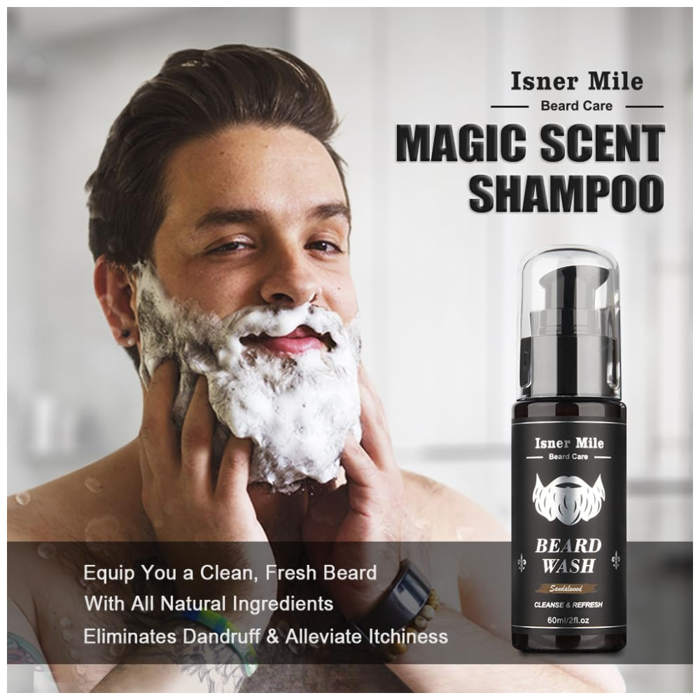 Este kit inclui Shampoo de Barba (100 ml), Óleo de Barba, Bálsamo, Escova de Cerdas Naturais, Pente de Madeira, Tesoura de Aço Inoxidável e Bolsa de Armazenamento, proporcionando uma experiência completa de cuidado e estilo. Com uma fragrância sutil de sândalo, ele é formulado com ingredientes naturais que hidratam, suavizam e rejuvenescem a barba, garantindo um aspecto saudável e bem cuidado durante todo o dia.