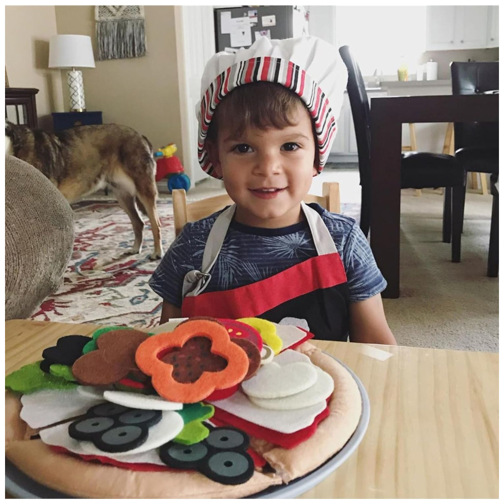 Este conjunto de comida de feltro de 42 peças da Melissa Doug permite que as crianças façam uma pizza de feltro de 10 polegadas com diversos ingredientes, como pimentão, tomate, cebola, azeitona, brócolis, cogumelos e calabresa. Além disso, é possível fazer uma fatia simples com apenas crosta, molho e queijo. O conjunto inclui uma forma de pizza durável e uma caixa de papelão para entrega de pizza. Feito com materiais de feltro duráveis e de alta qualidade, o conjunto é fácil de limpar e vem com várias ideias de brincadeiras de faz de conta.
