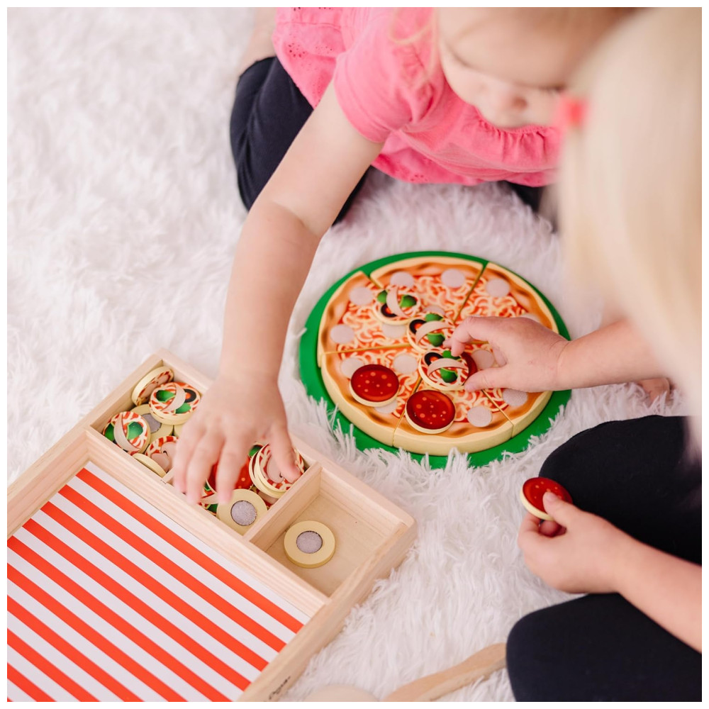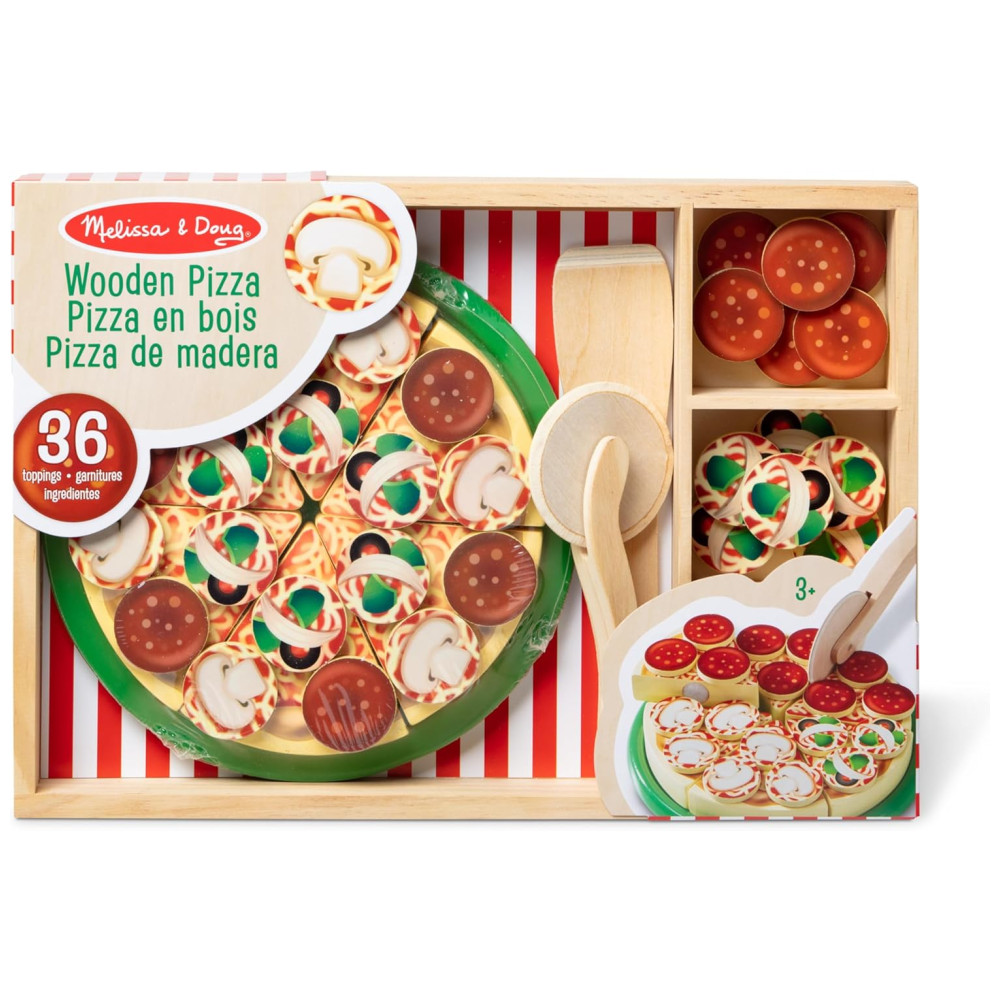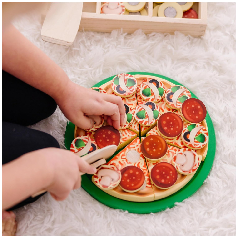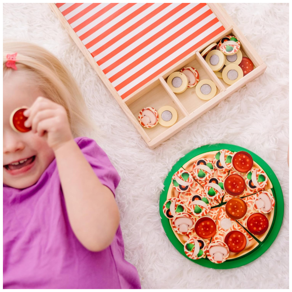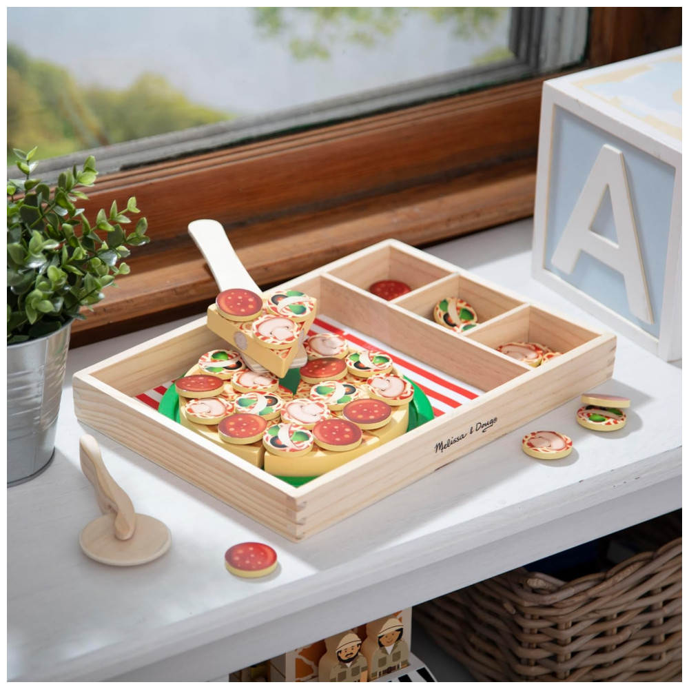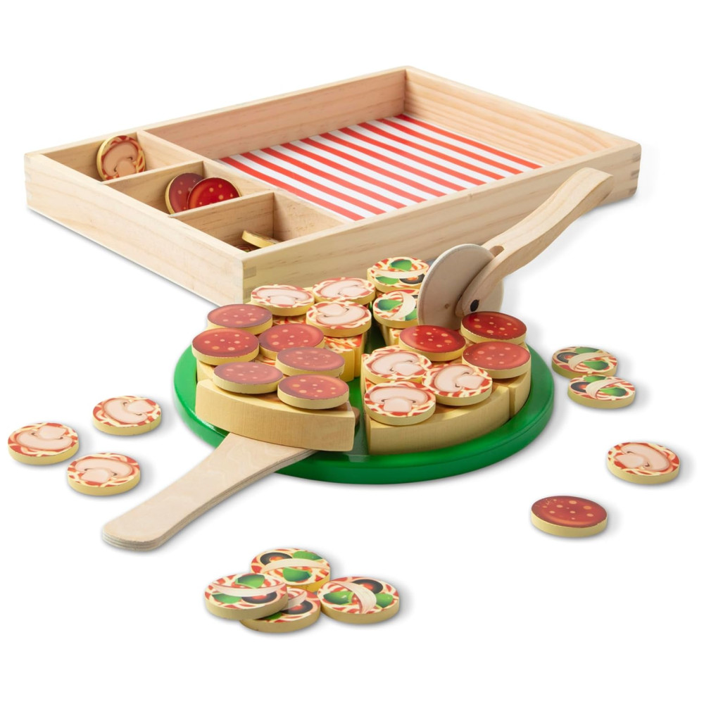 Kit Pizzaria Infantil de Madeira com 36 Coberturas e Cortador para Crianças Acima de 3 Anos Melissa & Doug
