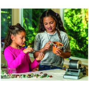 Com motor potente, tambor de borracha à prova de vazamentos e desligamento automático, o equipamento foi projetado para oferecer desempenho silencioso e seguro. Acompanha nove tipos de pedras brutas reais, quatro estágios de grãos abrasivos para o processo de lapidação e acessórios de joalheria que permitem transformar suas criações em peças únicas. O guia ilustrado incluso apresenta instruções detalhadas e informações geológicas fascinantes, tornando o aprendizado interativo e envolvente.