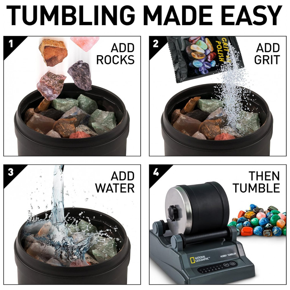 Com motor potente, tambor de borracha à prova de vazamentos e desligamento automático, o equipamento foi projetado para oferecer desempenho silencioso e seguro. Acompanha nove tipos de pedras brutas reais, quatro estágios de grãos abrasivos para o processo de lapidação e acessórios de joalheria que permitem transformar suas criações em peças únicas. O guia ilustrado incluso apresenta instruções detalhadas e informações geológicas fascinantes, tornando o aprendizado interativo e envolvente.