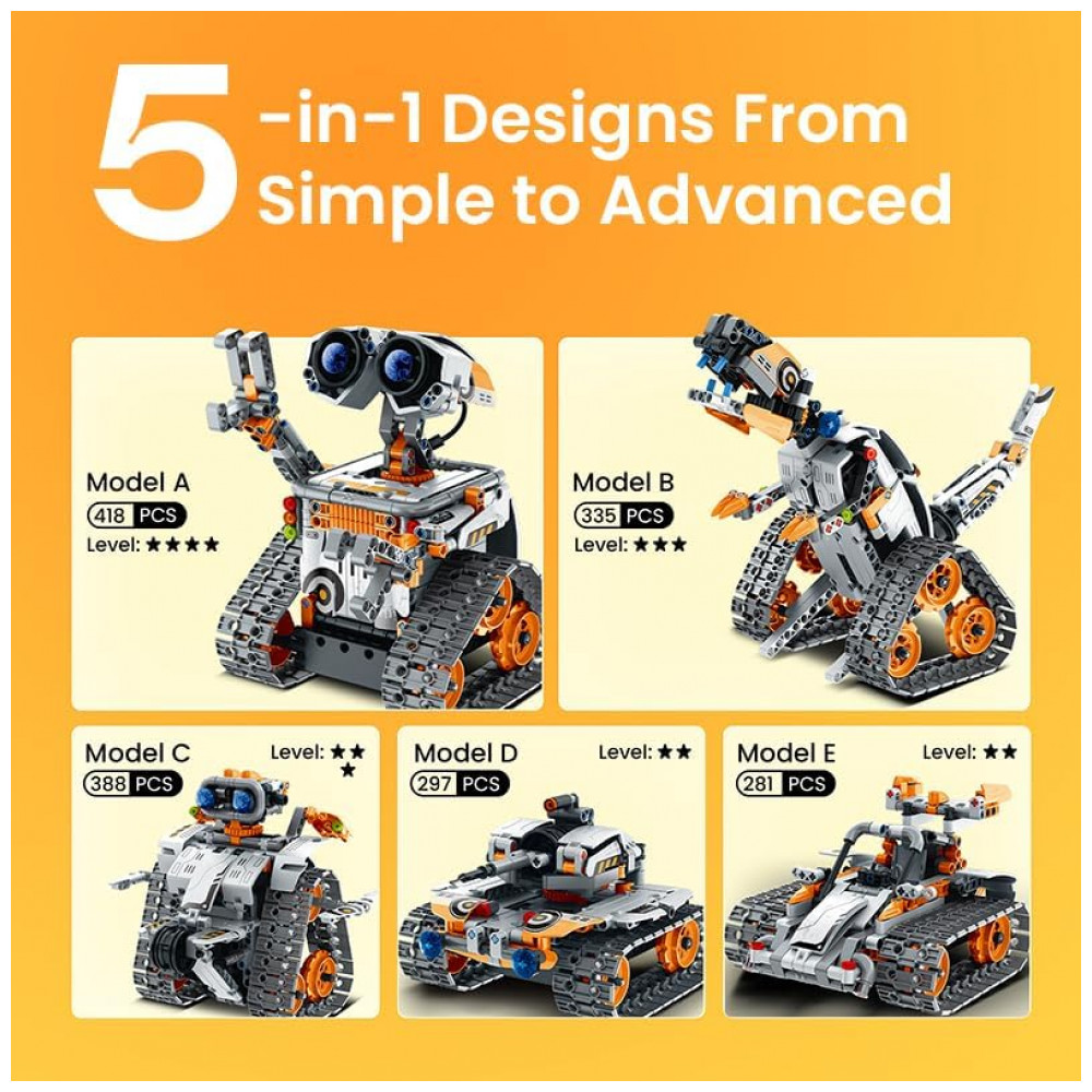 Kit robô 5 em 1 Sillbird laranja com 488 peças controle remoto e app robótica STEM para crianças a partir de 8 anos