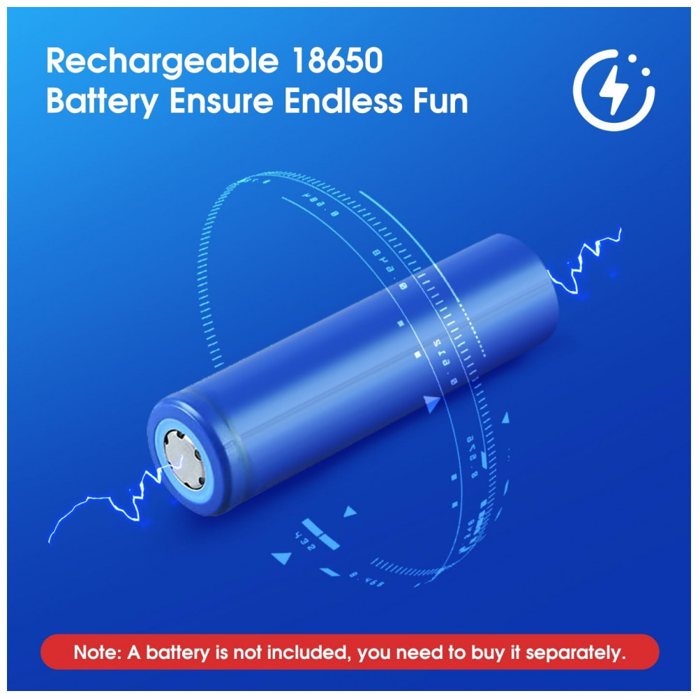 Alimentação: 1 bateria recarregável 18650 (não incluída), recarga via USB‑C