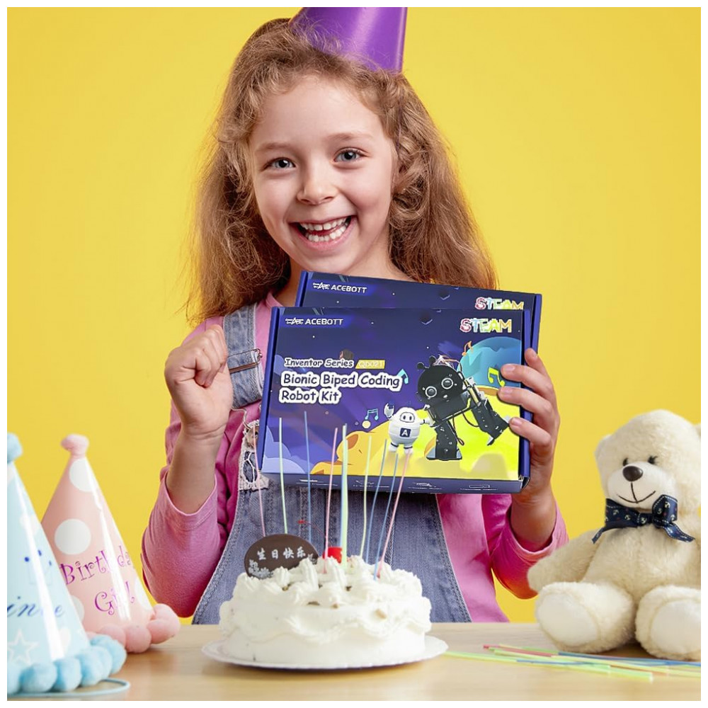 O kit ACEBOTT Bionic Biped Robot é um robô bípede educacional baseado em ESP32, indicado para iniciantes em robótica e programação a partir de cerca de 12 anos. Ele permite montar um robô de dois “pés” capaz de se deslocar em quatro direções, com 12 ações pré-programadas como chutar, inclinar, seguir, pisar e desviar de obstáculos, além de permitir criar sequências próprias de movimento via código.