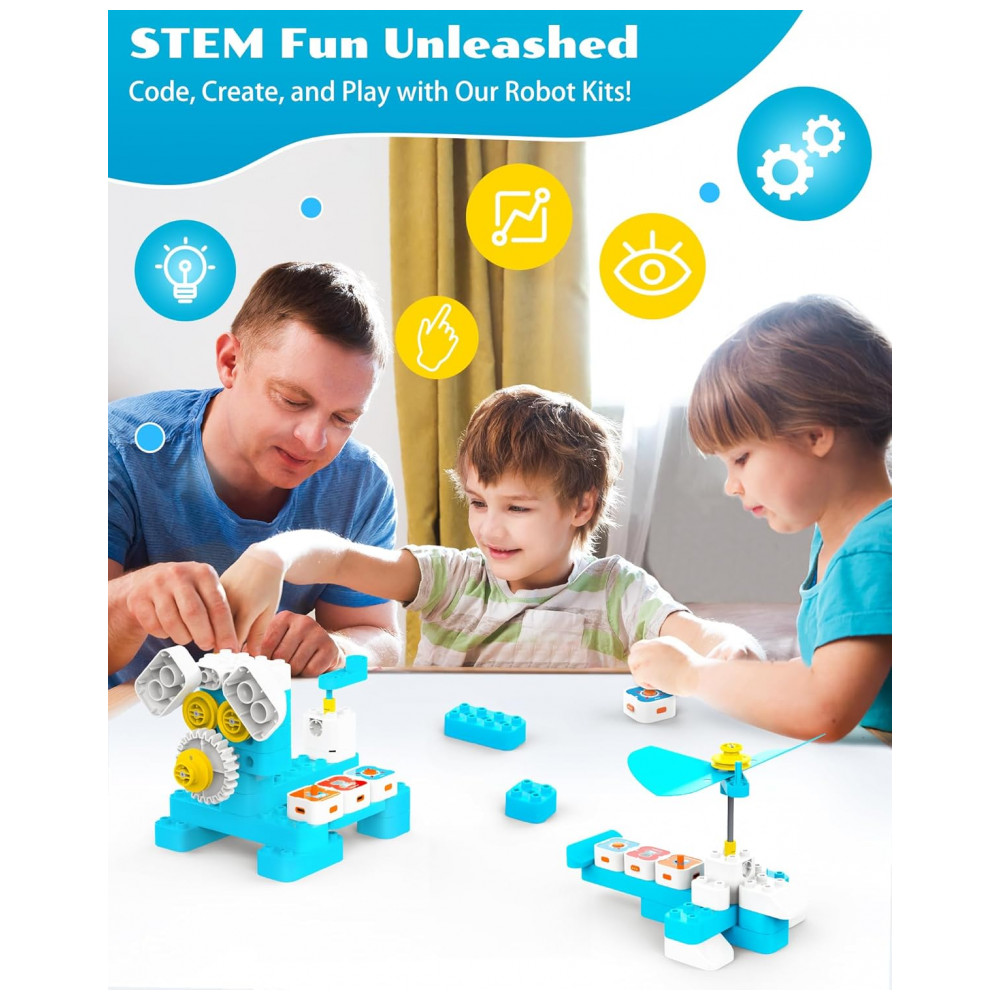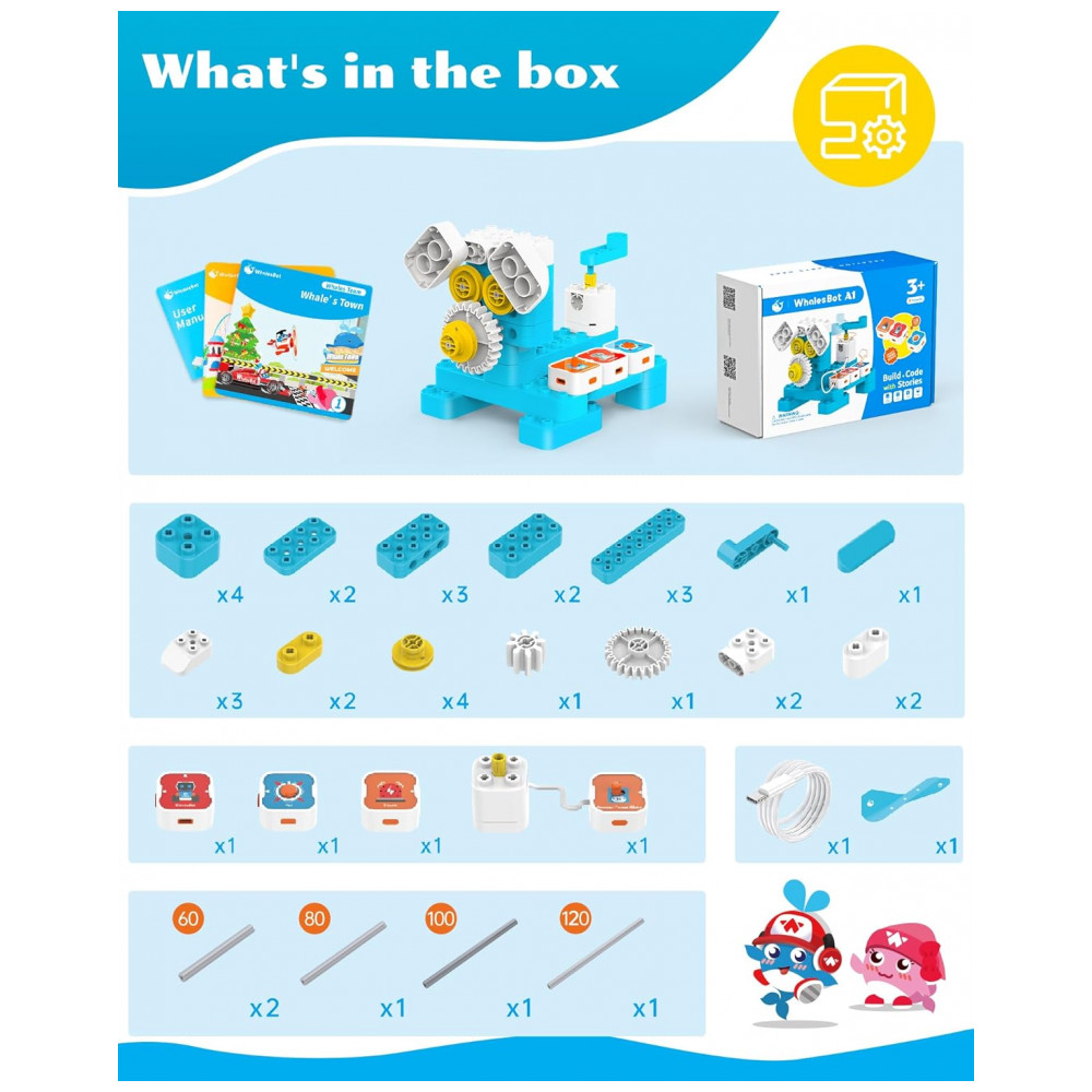 Kit Robô de Programação STEM WhalesBot A1 & B3 Pro com Blocos Magnéticos e Cartas de Código para Crianças a Partir de 3 Anos