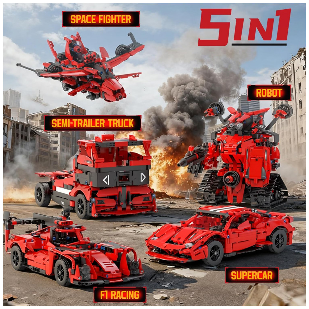 Kit robô F1 5 em 1 QHECTTY com 785 peças carros e robô com app e controle remoto para crianças 6 a 14 anos