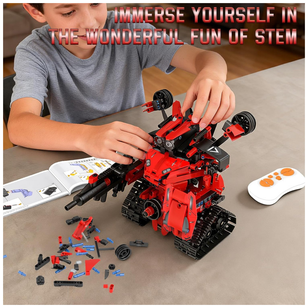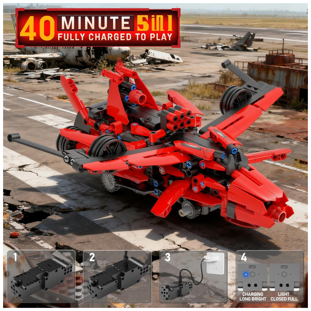 O kit de construção QHECTTY 5 em 1 é um conjunto STEM com 785 peças que permite montar cinco modelos diferentes: robô espacial armado, supercarro, carro de corrida F1, caminhão semirreboque pesado e caça espacial. Os modelos utilizam blocos compatíveis com outras marcas, módulo motorizado e unidade de controle, formando estruturas detalhadas com foco em engenharia automotiva e robótica básica. O sistema foi pensado para uso em ambientes internos e externos, com desempenho de condução adequado a pisos lisos e superfícies mais irregulares.