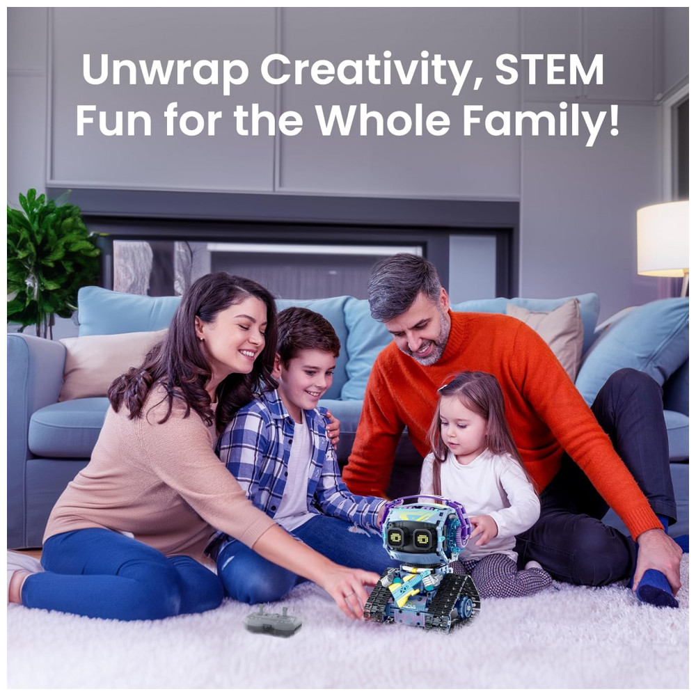 O conjunto trabalha conceitos de STEM ao integrar construção mecânica, engrenagens, rodas, eletrônica básica, controle digital e uso de aplicativo. O formato 5 em 1 permite explorar diferentes estruturas de robôs e veículos, aproximando a criança de noções de engenharia, tecnologia e lógica de sistemas de forma prática.