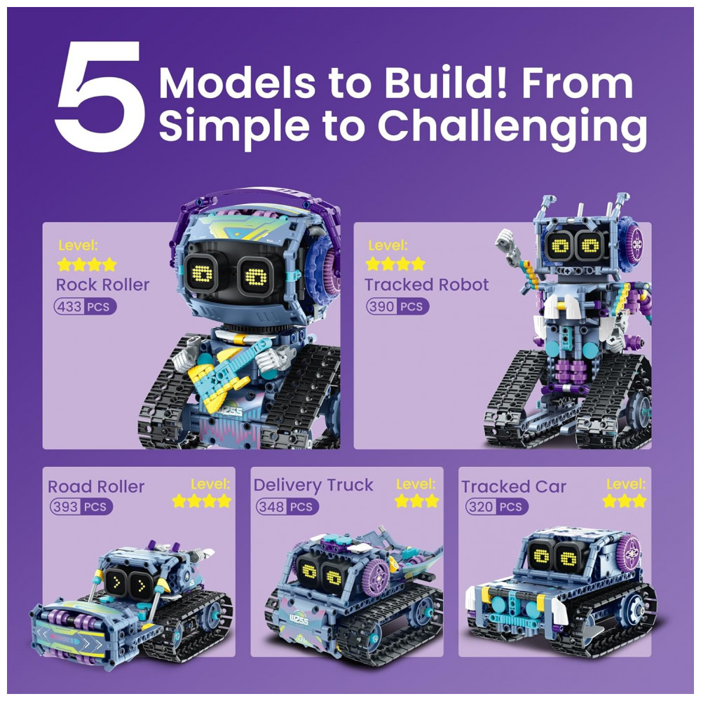 Kit robô STEM 5 em 1 Sillbird RockRoller com 433 peças controle remoto app Bluetooth e codificação para crianças 8 a 12 anos
