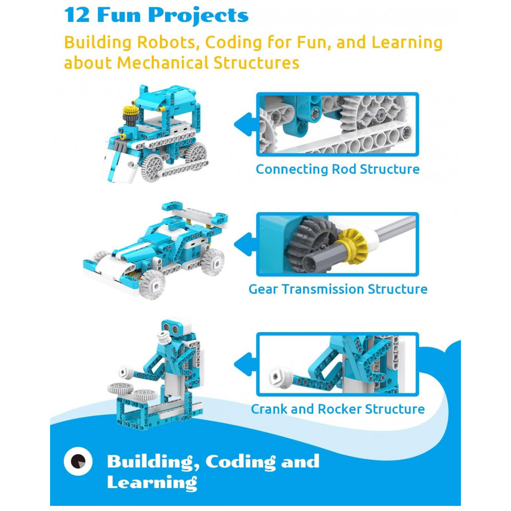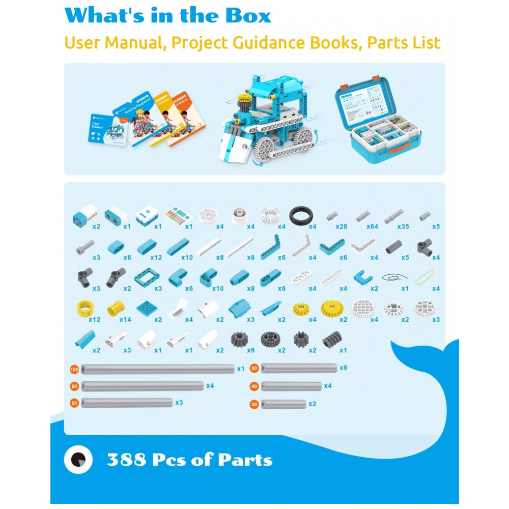 Kit Robótico 12 em 1 para Aprendizagem com Codificação STEM 6 a 8 Anos WhalesBot D3 Azul
