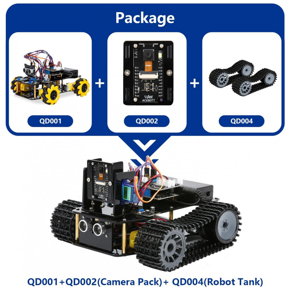 Kit Robótico ACEBOTT tanque com câmera 3MP compatível com Arduino Scratch e app