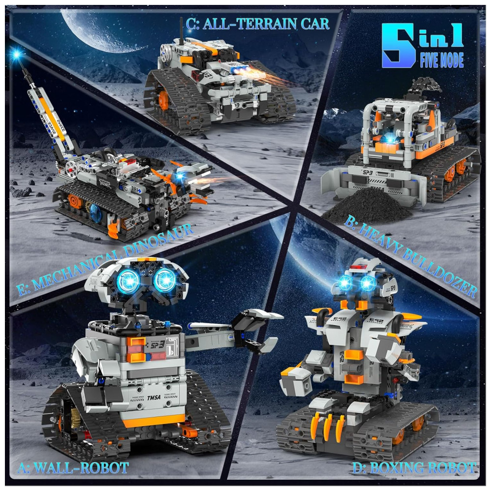 Kit Robótico QHECTTY RC STEM 5 em 1 dinossauro robô e veículos com controle APP e controle remoto