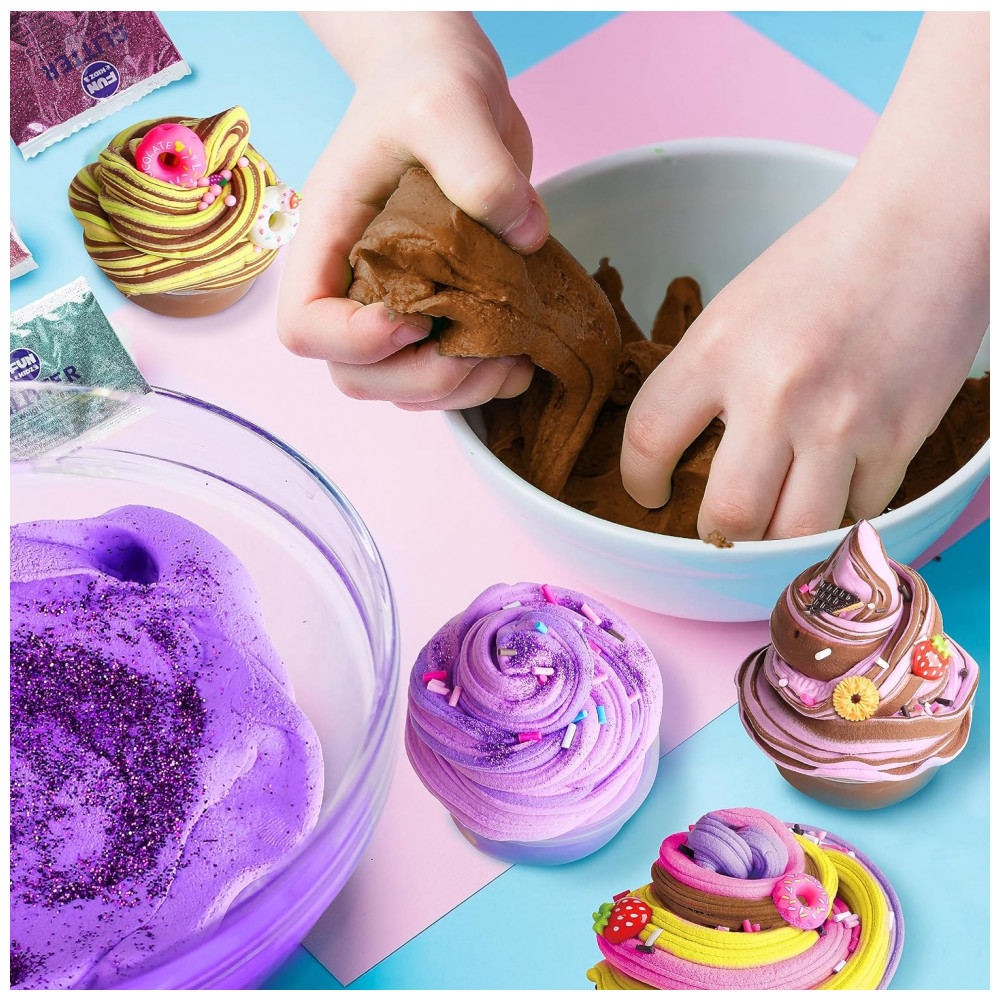 O ICE CREAM SLIME DIY é um kit completo para criar slime de manteiga macia com tema de sorvete. Com a adição de mixins como brilhos de doces, amuletos de frutas e glitter, você pode criar sua própria cobertura de sundae de sorvete. Este kit é perfeito para crianças de 6 a 12 anos e é uma ótima ideia de presente para aniversários, feriados e outras ocasiões especiais. Além disso, o kit vem com quatro garrafas grandes de slime de manteiga pré-fabricado suficientes para compartilhar com amigos e familiares. O pacote também inclui cinco latas de armazenamento herméticas reutilizáveis para manter o slime fresco e evita que seque. O slime é suave, elástico e macio, proporcionando horas de diversão para as crianças. Além disso, o kit ajuda a melhorar a capacidade de colocação de cores e as habilidades práticas das crianças, bem como a interação e comunicação entre pais e filhos.