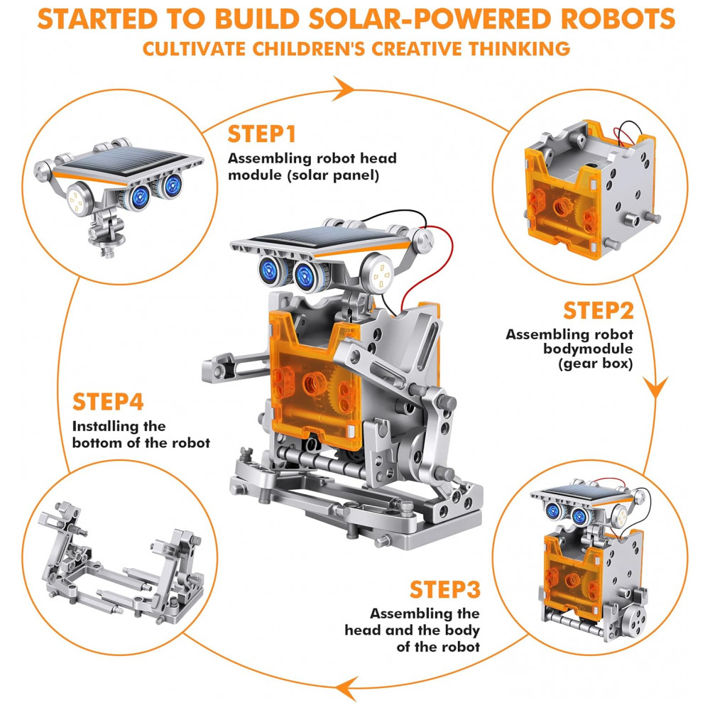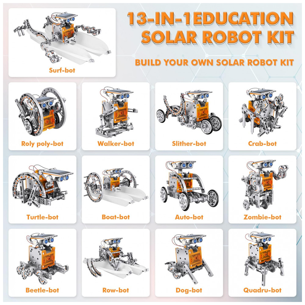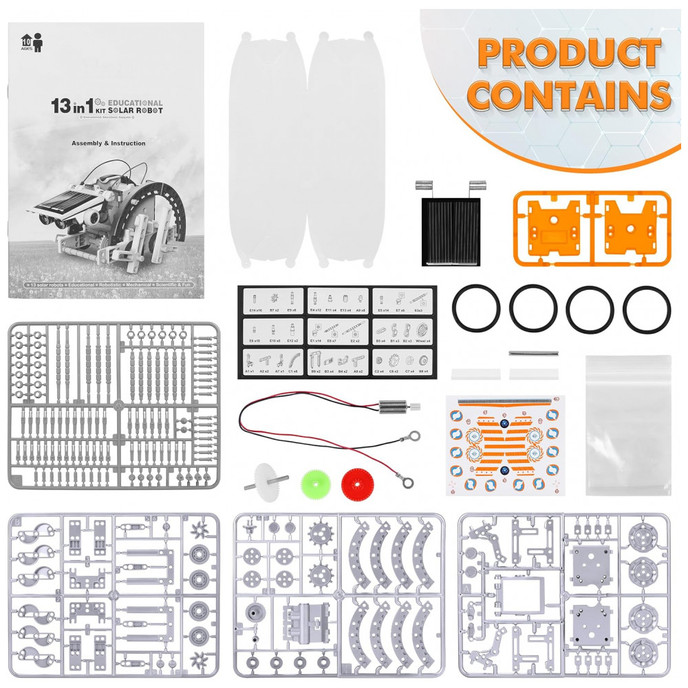 Kit STEM 13 em 1 Robô Solar – Robotics de Montar Brinquedo Educativo DIY de Ciências para Crianças a partir de 8 anos