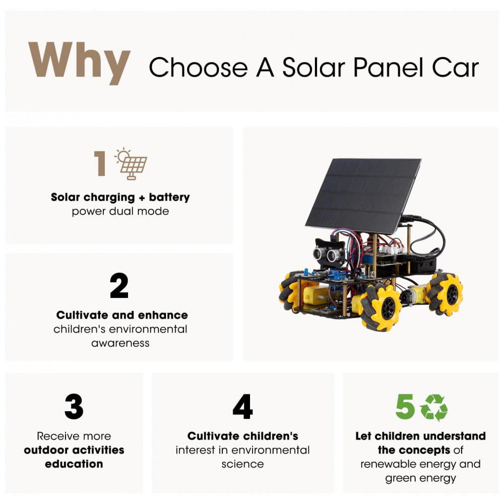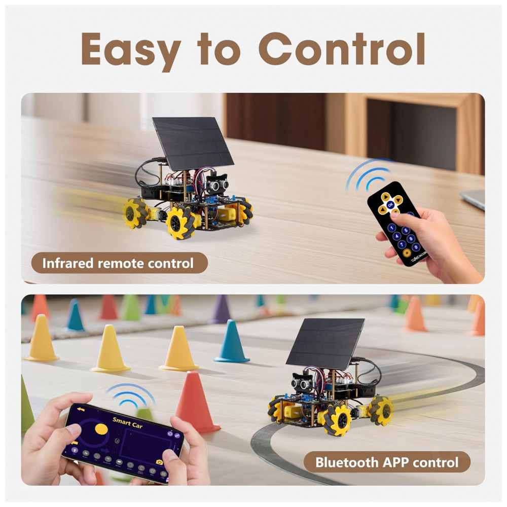 O produto integra principalmente as áreas de ciência, tecnologia e engenharia do STEM, combinando robótica móvel, eletrônica embarcada, programação e estudo de energia solar. Atividades como navegação autônoma, desvio de obstáculos, modos de acompanhamento e planejamento de trajetórias permitem explorar, de forma prática, princípios de sensores, controle e algoritmos aplicados a veículos inteligentes.