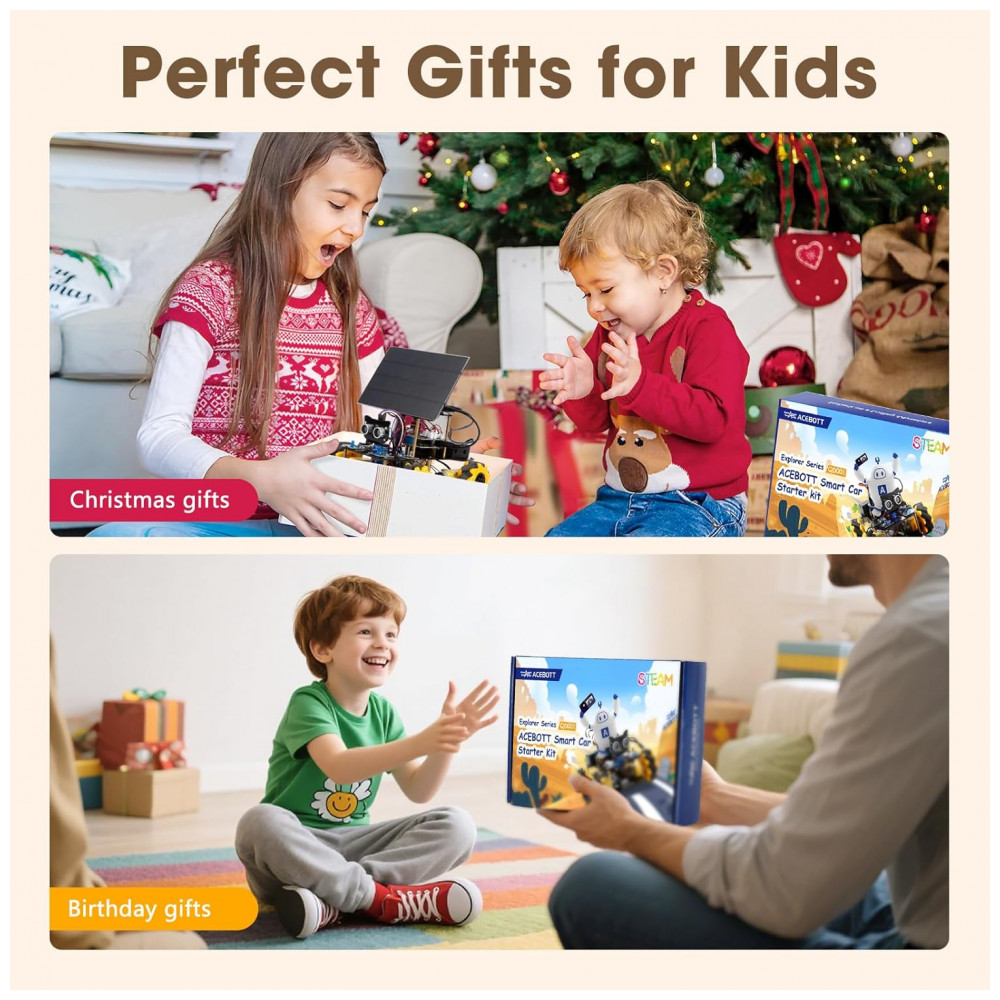 A ACEBOTT é uma marca dedicada a kits de robótica e brinquedos educativos STEM, com foco em carros programáveis, expansões modulares e soluções para ensino de programação e eletrônica. A fabricação deste modelo é realizada pela empresa Shen zhen shi ai si bo ke ji you xian gong si, que fornece materiais complementares como vídeos em alta definição e instruções detalhadas para apoiar o uso em escolas, clubes de robótica e ambientes domésticos.