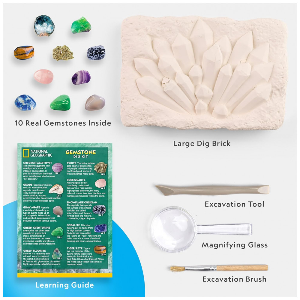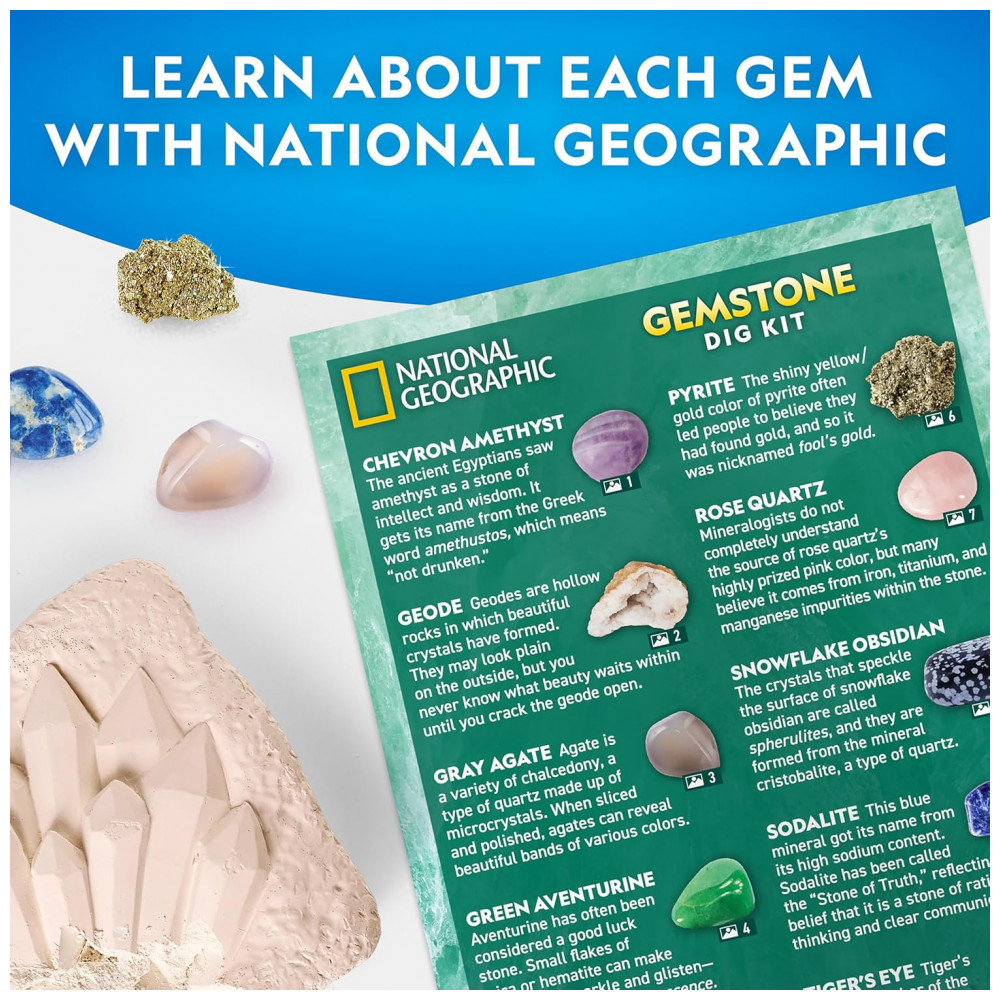 Kit Super Escavação de Gemas – 10 Gemas Reais Kit STEM de Geologia para Crianças Presente Educativo National Geographic