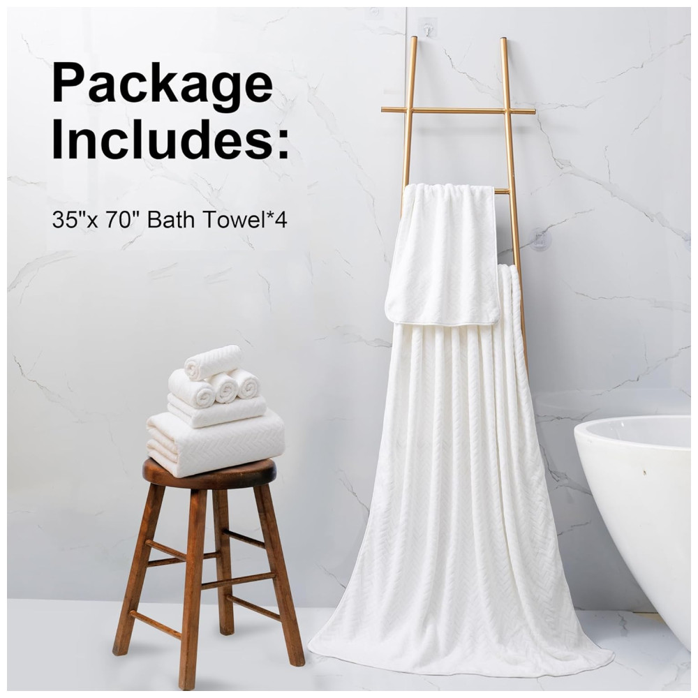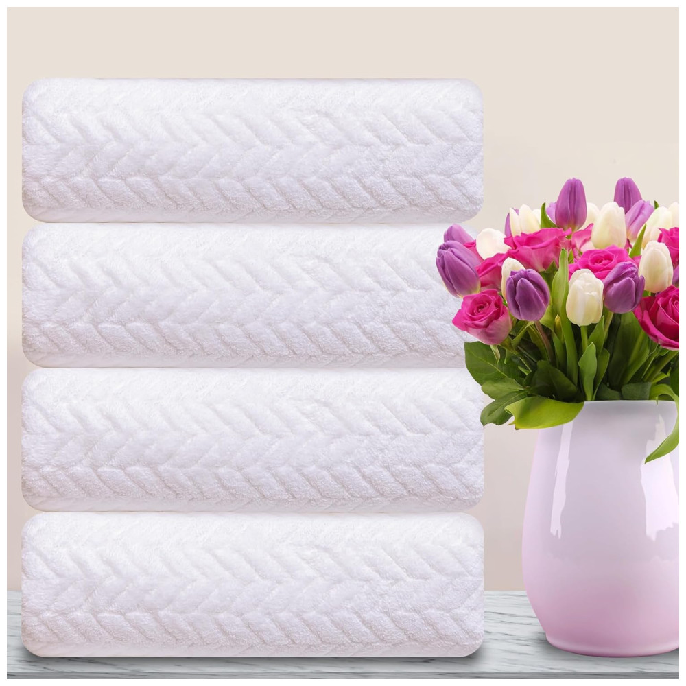 Kit Toalhas de Banho Altamente Absorventes de Microfibra com 4 Peças para Banheiro Cozinha Spa Hotel e Academia Tigona Branca