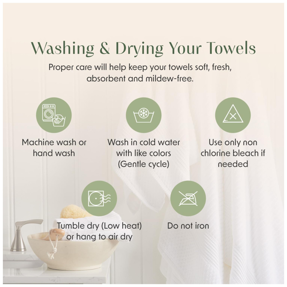 Para manter suas toalhas macias, frescas e altamente absorventes, recomenda-se lavá-las à máquina com água fria, utilizando cores semelhantes. A secagem deve ser feita em temperatura baixa ou, preferencialmente, penduradas para secar ao ar. Para garantir a máxima absorção, evite o uso de lençóis de secadora.