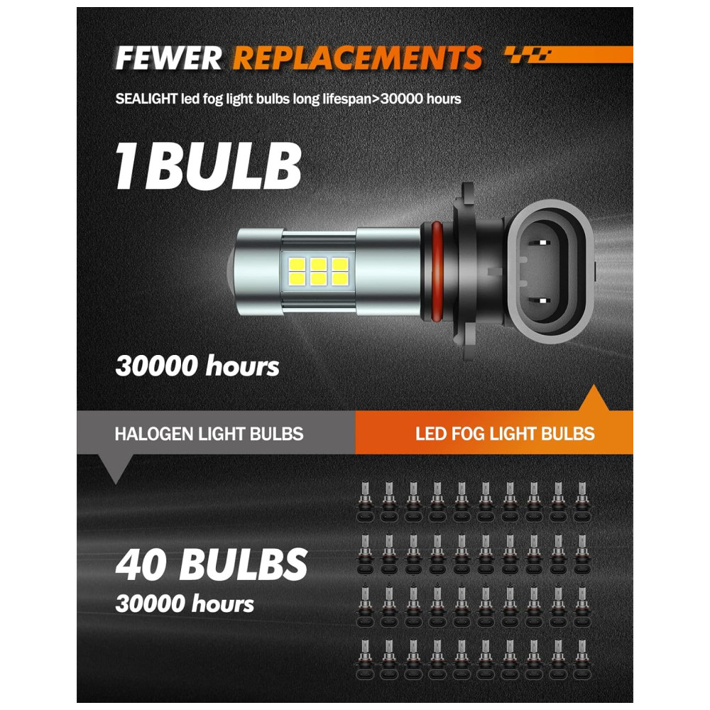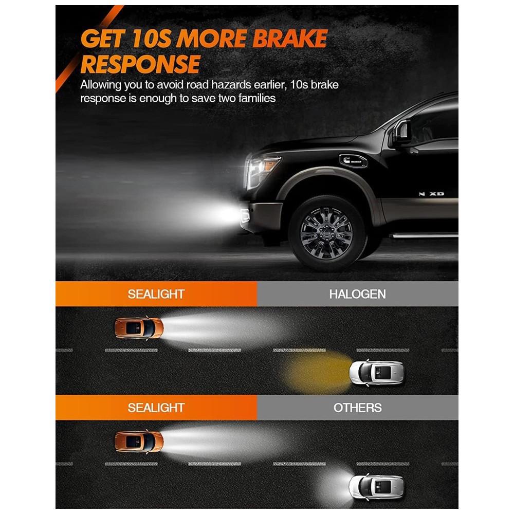 SEALIGHT Vantagens Em primeiro lugar, o design da lente projeta a luz mais longe, formando um feixe focado, que não vai deslumbrar os veículos que se aproximam. Em segundo lugar, cada lâmpada está equipada com 27 chips de LED a maioria das lâmpadas tem apenas 6 chips para alcançar uma iluminação de 360 graus