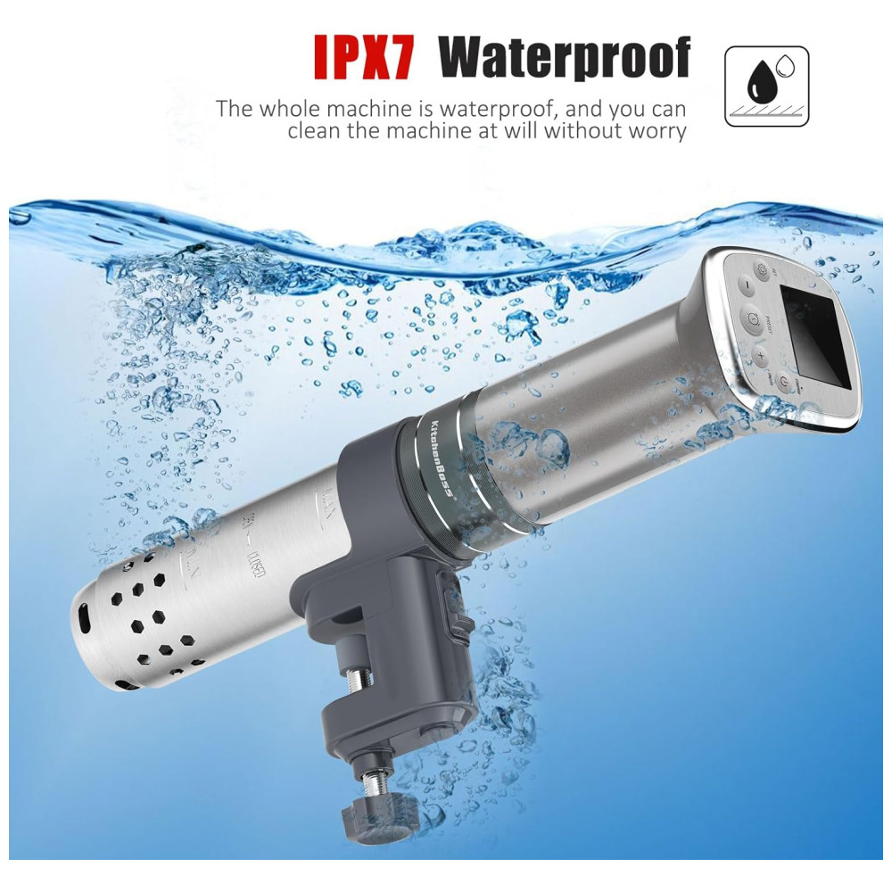 Super fluxo de água e aquecimento uniforme O design de 20L , min do circulador de imersão aumenta a velocidade de circulação interna da água e garante a estabilidade da temperatura em cada lugar. Isso permite que você coloque mais ingredientes na mesma panela ao mesmo tempo, e você não não precisa se preocupar com temperaturas desiguais que podem impedir o aquecimento adequado dos alimentos.