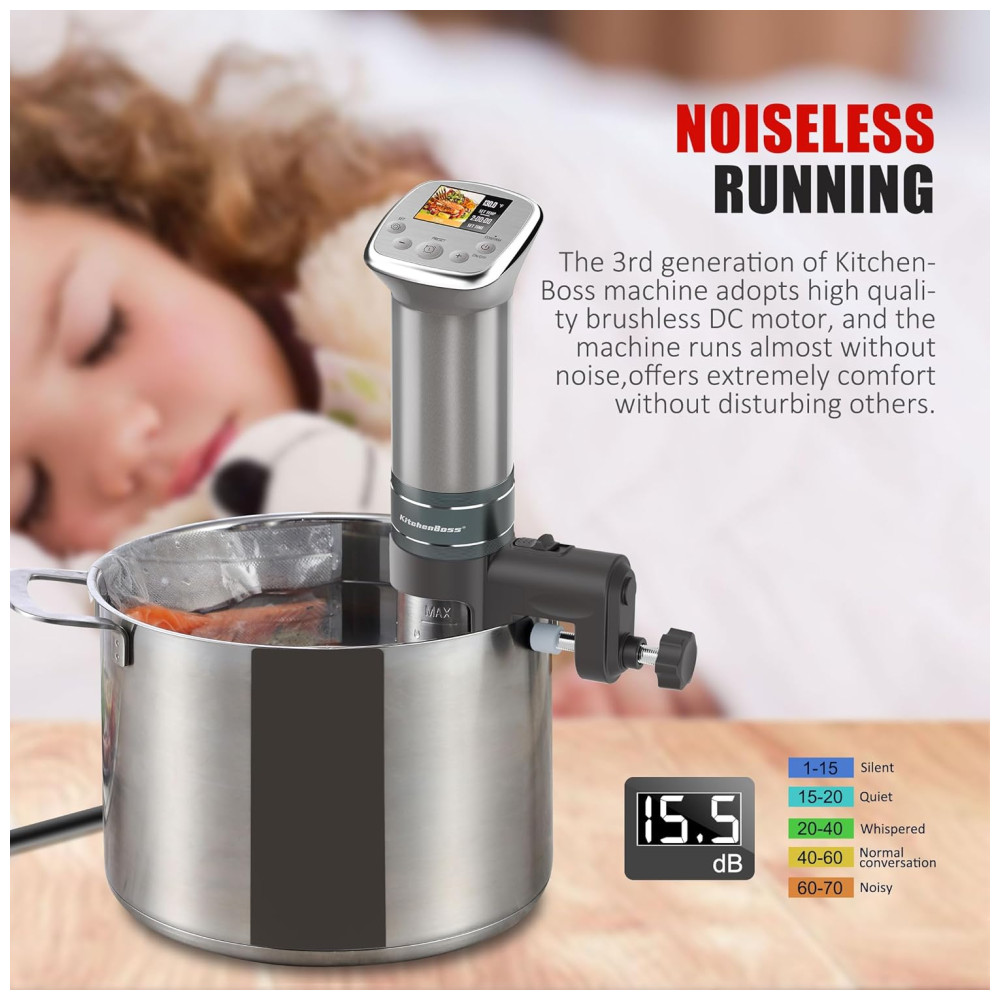 Material de alta potência de classe UAV de última geração O sous vide adota motor DC sem escova da mesma qualidade do UAV de última geração, com rotação uniforme de 3800r , m. É ultrassilencioso e mais durável, e tem melhor desempenho do que a geração anterior.