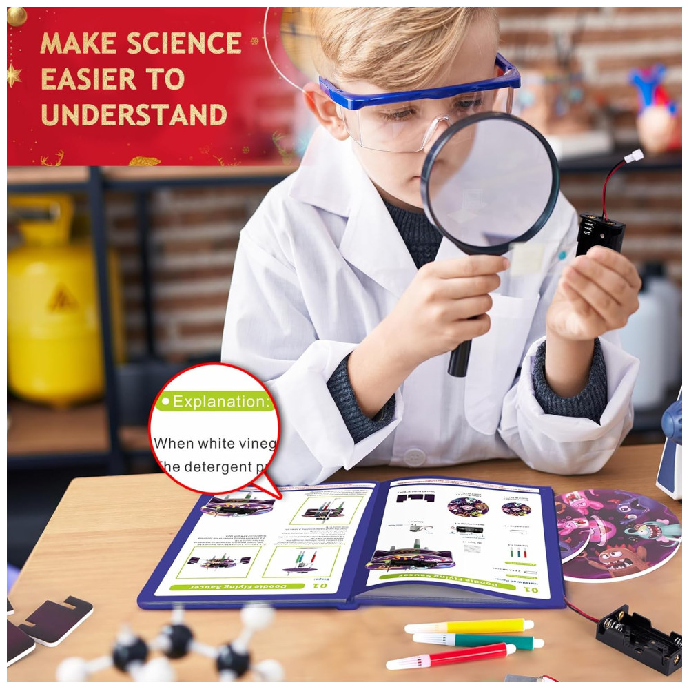O kit de ciências para crianças Japace é uma ótima maneira de despertar o amor pela ciência em seu filho desde cedo. Com 65 projetos diferentes, incluindo experimentos de físico química como a árvore magnética e criando reações efervescentes, as crianças vão adorar explorar e aplicar conceitos STEM, desenvolvendo habilidades como pensamento inovador, cooperação olho mão e solução de problemas.