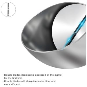 CARACTERÍSTICAS 3pcs de lâminas totalmente de aço inoxidável para muito rapidamente, design antiderrapante de alça côncava, convexa e redonda, fácil de usar e limpar, maior diâmetro de saída de gelo e maior distância de saída de gelo são adequados para tipos de recipientes, calor projetado pia com abertura traseira para operação estável e maior vida útil.