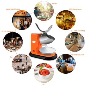 APLICAÇÕES Nossa máquina de fazer gelo raspado não é apenas adequada para uso doméstico, mas também para uso . Suas festas familiares, sorveterias, restaurantes, bares, escolas, cafés, hotéis, clubes, carnavais, banquetes e todos os tipos de festivais etc., esta máquina de fazer gelo se tornará sua melhor escolha para seus verões quentes