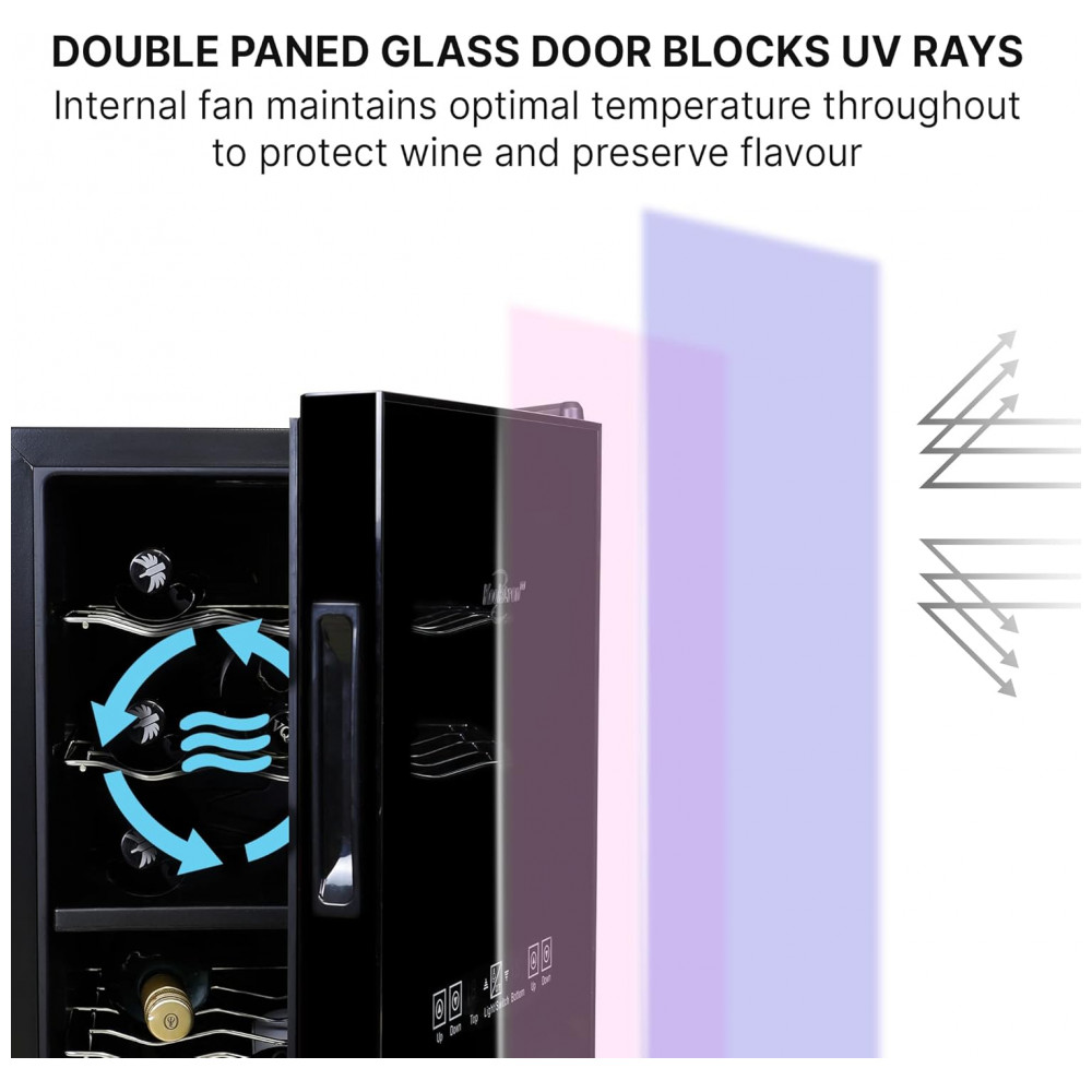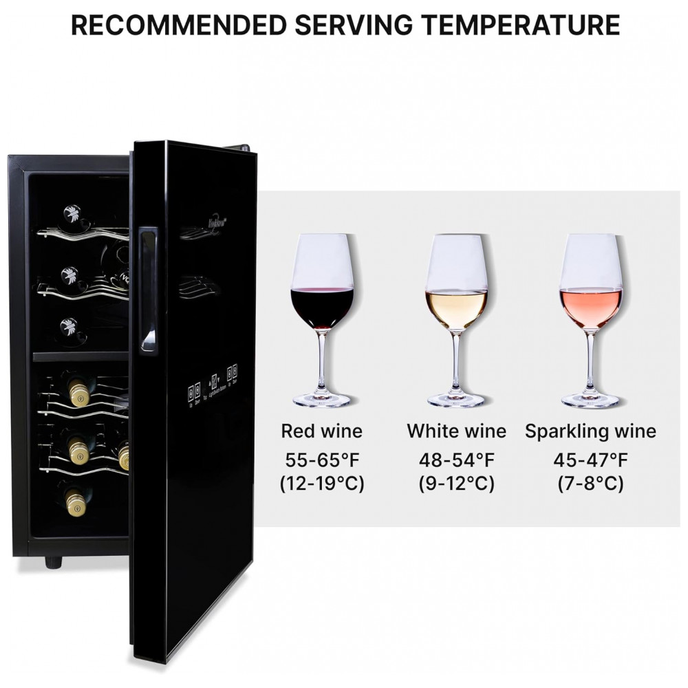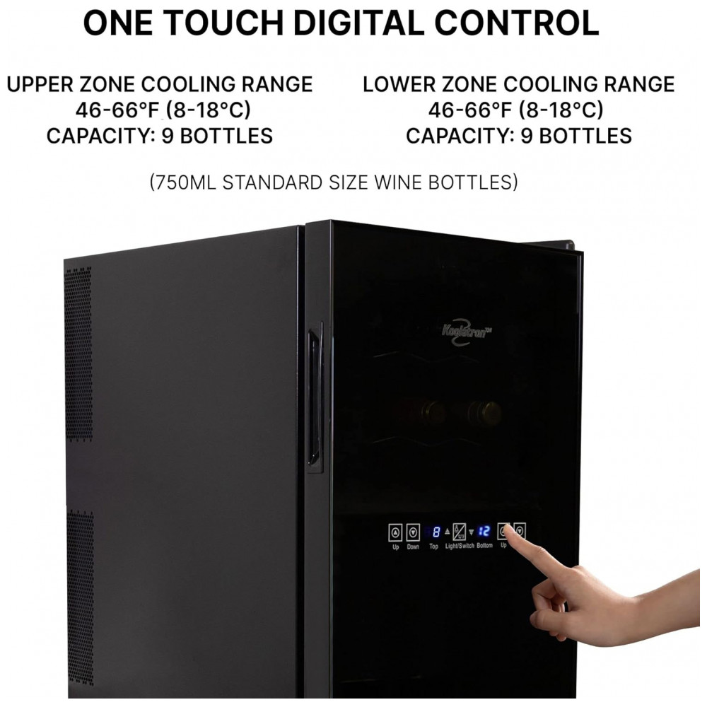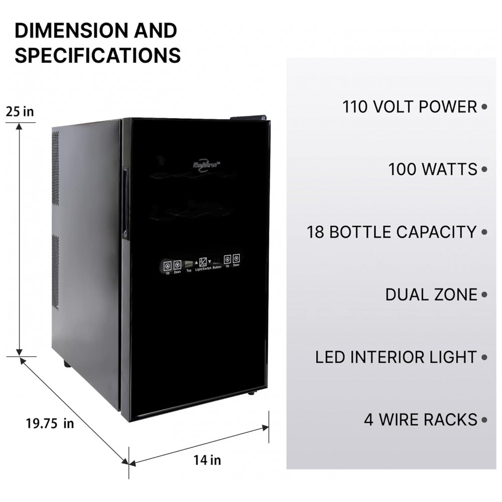 Koolatron 18 Garrafas Dual Zone Refrigerador de Vinhos Geladeira de Vinhos Preta48L Adega Independente Armazenamento de Vinhos