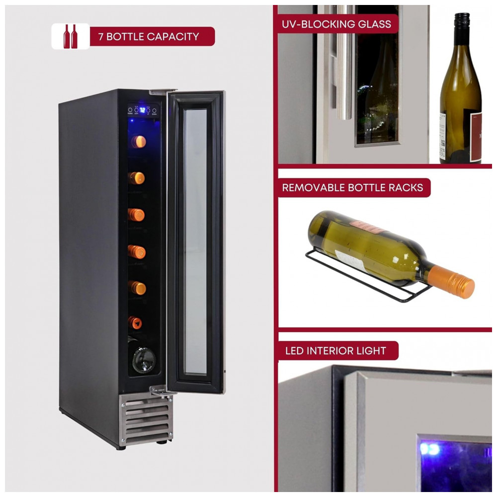 Koolatron Wine Fridge: Adega de Vinhos Embutida de 7 Garrafas 18L Aço Inoxidável