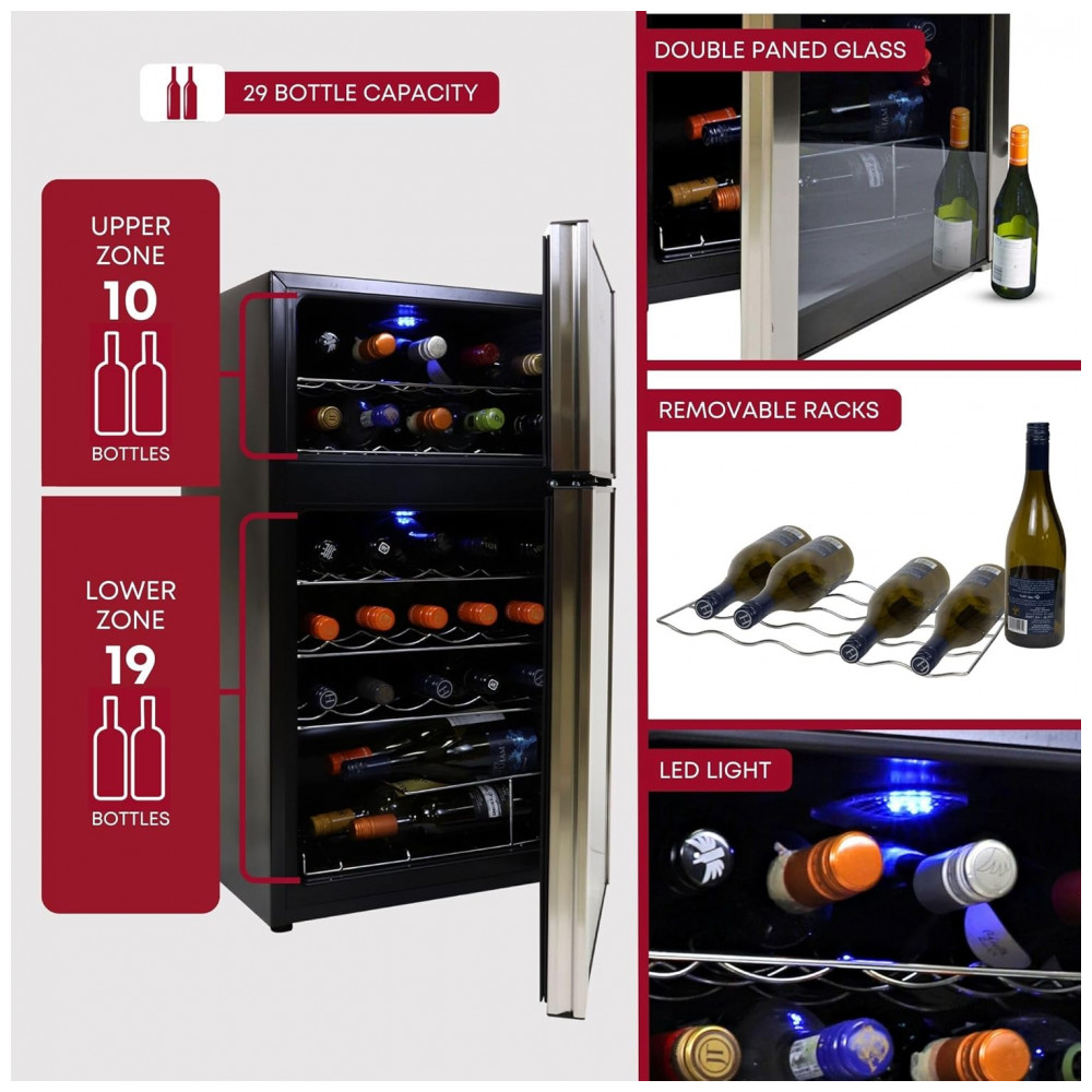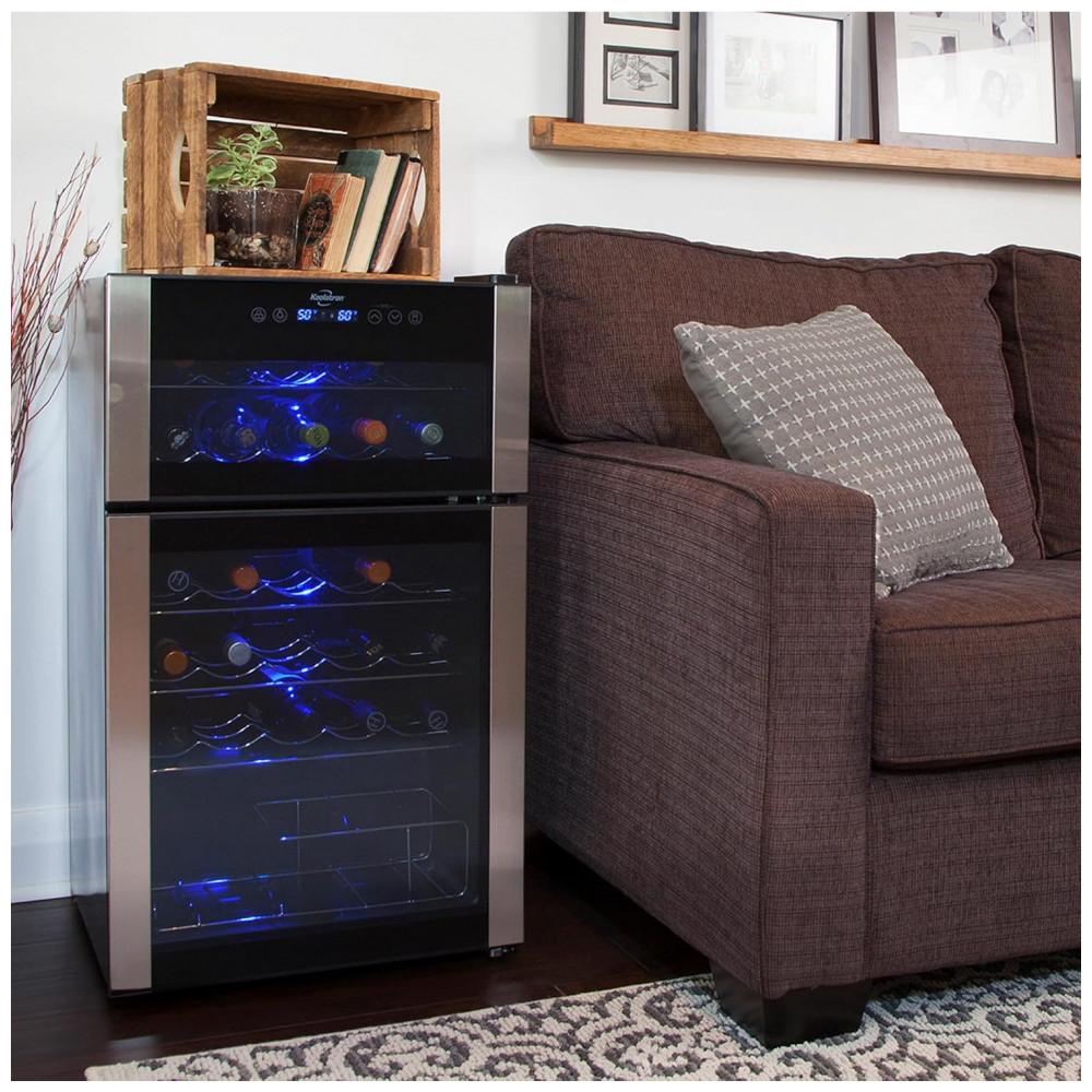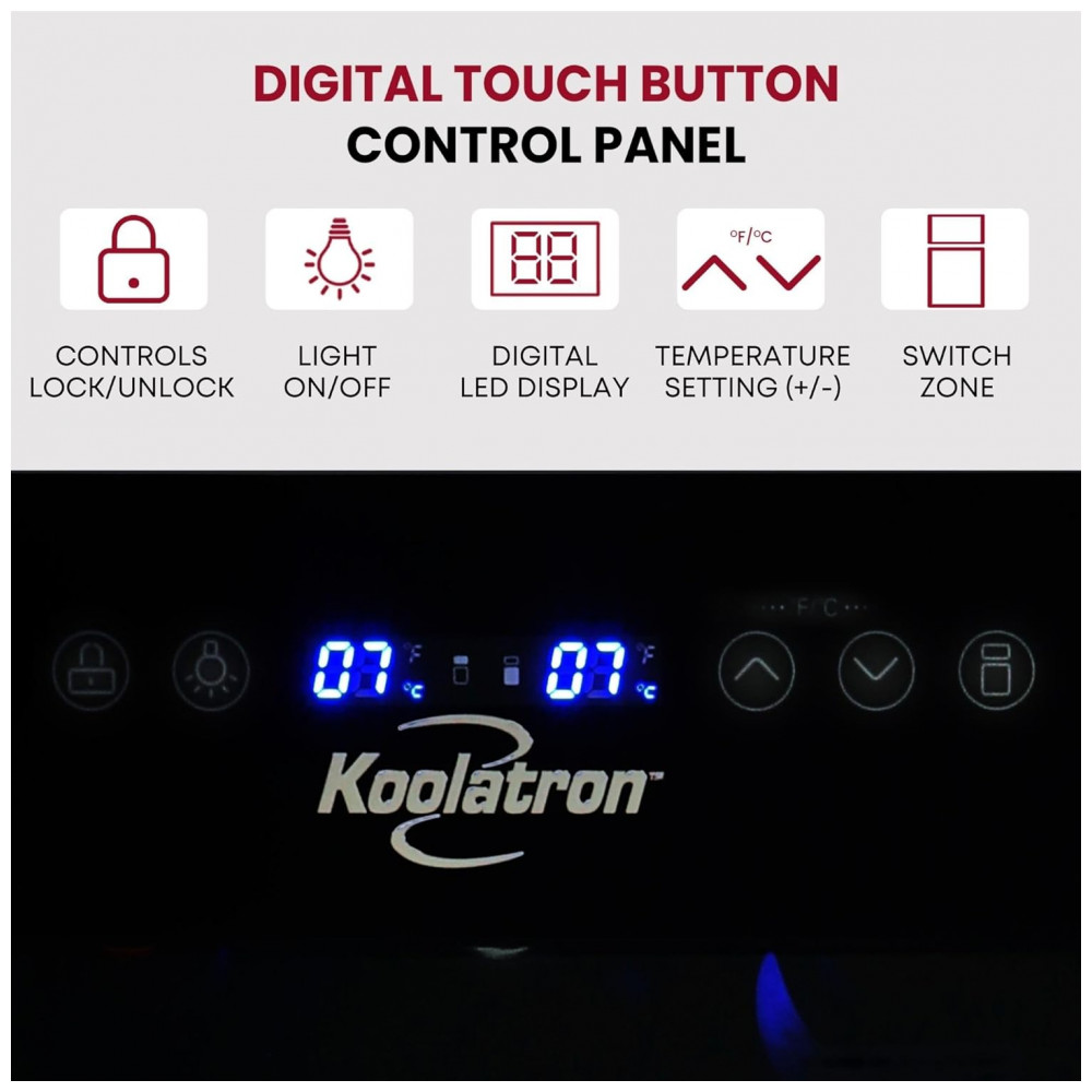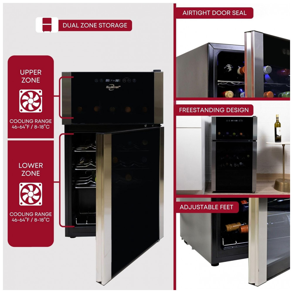 Koolatron Wine Fridge Wine Cooler 24 Garrafas Armário para Champanhe Vinho Branco e Tinto Dupla Zona de Resfriamento Autônomo para Bar Casa