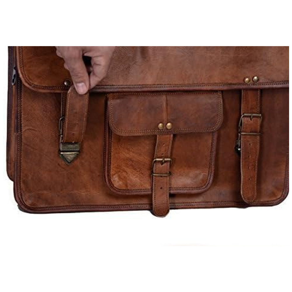 KPL Bolsa Pasta de Couro de Flor Integral para Laptop Masculina KOMALS PASSION LEATHER AJ UJIA S84U Marrom