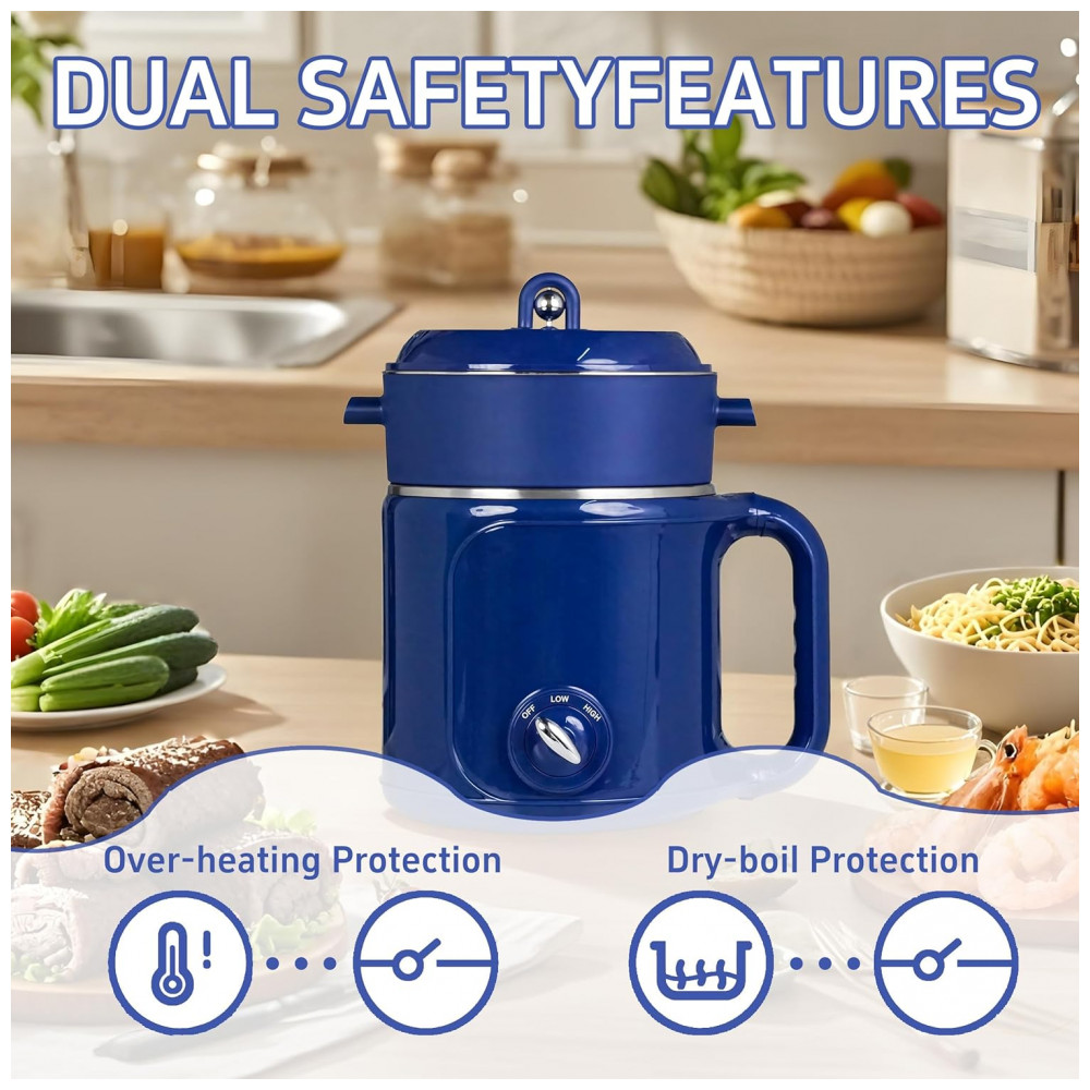 A panela elétrica Ksalinameslon é perfeita para quem busca praticidade na cozinha sem abrir mão da versatilidade. Com capacidade de 2 litros, esta panela em aço inoxidável é ideal para preparar refeições para até 3 pessoas. Seu design portátil inclui uma dupla camada com suporte para vapor, permitindo cozinhar diversos pratos como macarrão, aveia, fondue, sopas, frutos do mar e muito mais. Equipado com duas opções de potência ajustáveis – 300W para alimentos delicados como ovos e sopas, e 600W para preparações mais robustas como carnes e cozidos – ela garante cozimento rápido e eficiente. A tampa com vidro transparente permite visualizar o alimento durante o preparo, enquanto a alça confortável facilita o manuseio. O cabo de energia removível torna este aparelho fácil de transportar, ideal para apartamentos, dormitórios, escritórios, acampamentos e piqueniques. Compacta e fácil de guardar, a panela elétrica Ksalinameslon é a combinação perfeita de funcionalidade e design moderno em um vibrante azul escuro. Um excelente presente para estudantes e amigos que apreciam praticidade e boa culinária.