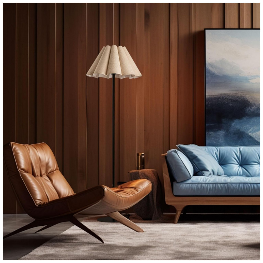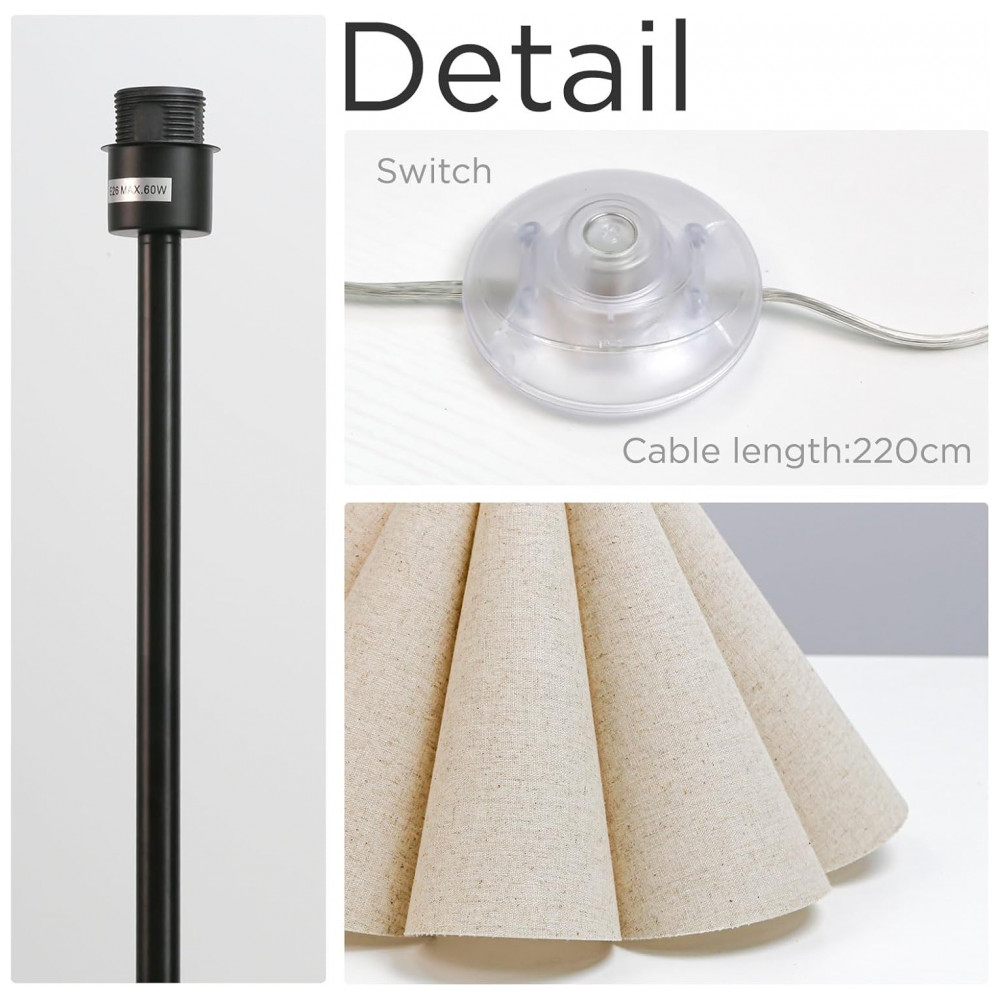 KUNJOULAM Luminária de Chão Moderna com Abajur Bege e Base Preta – Elegância e Funcionalidade para Sala Quarto e Escritório