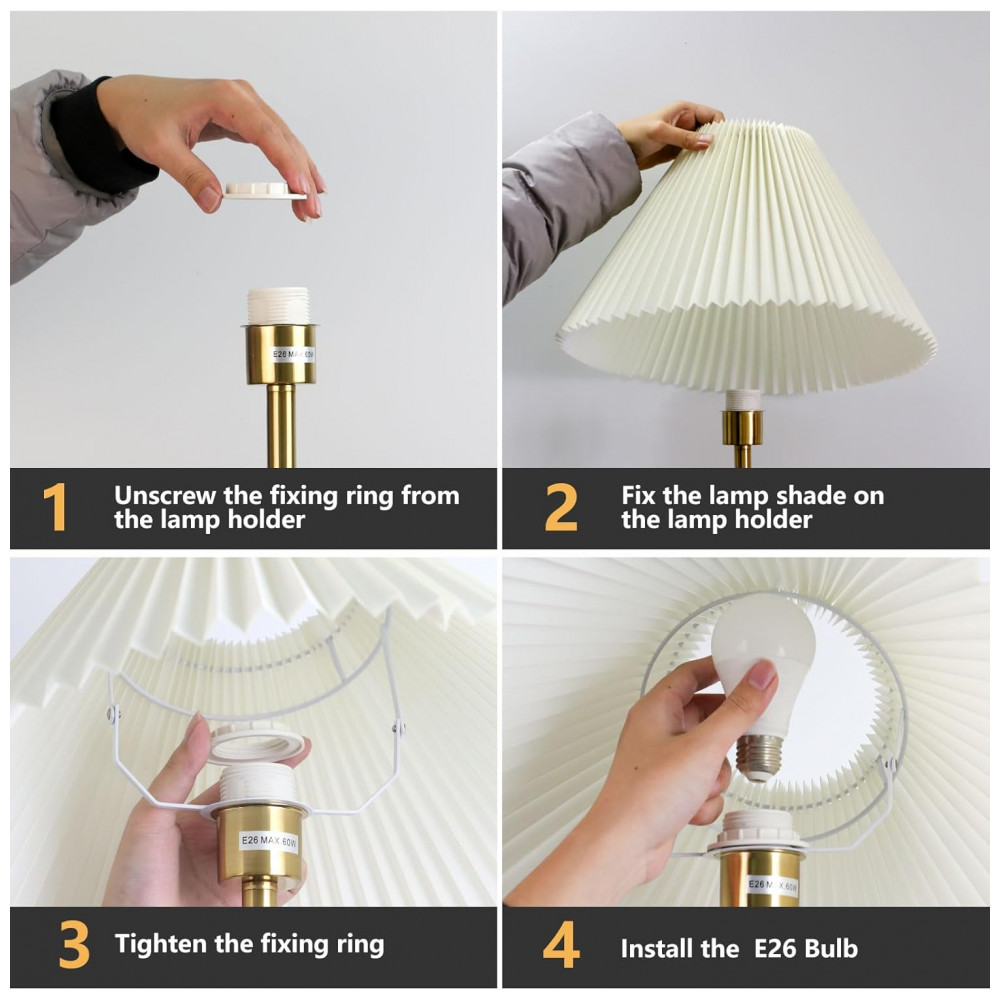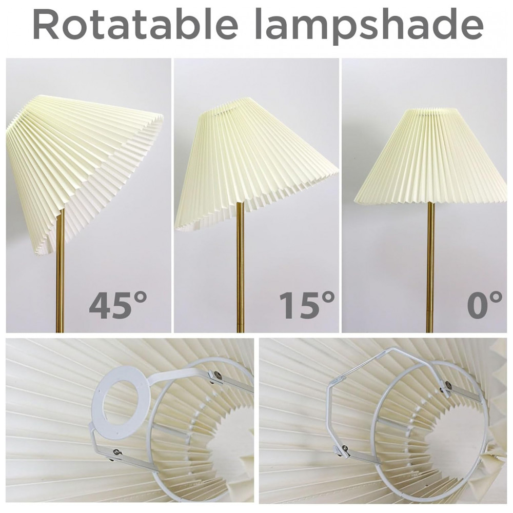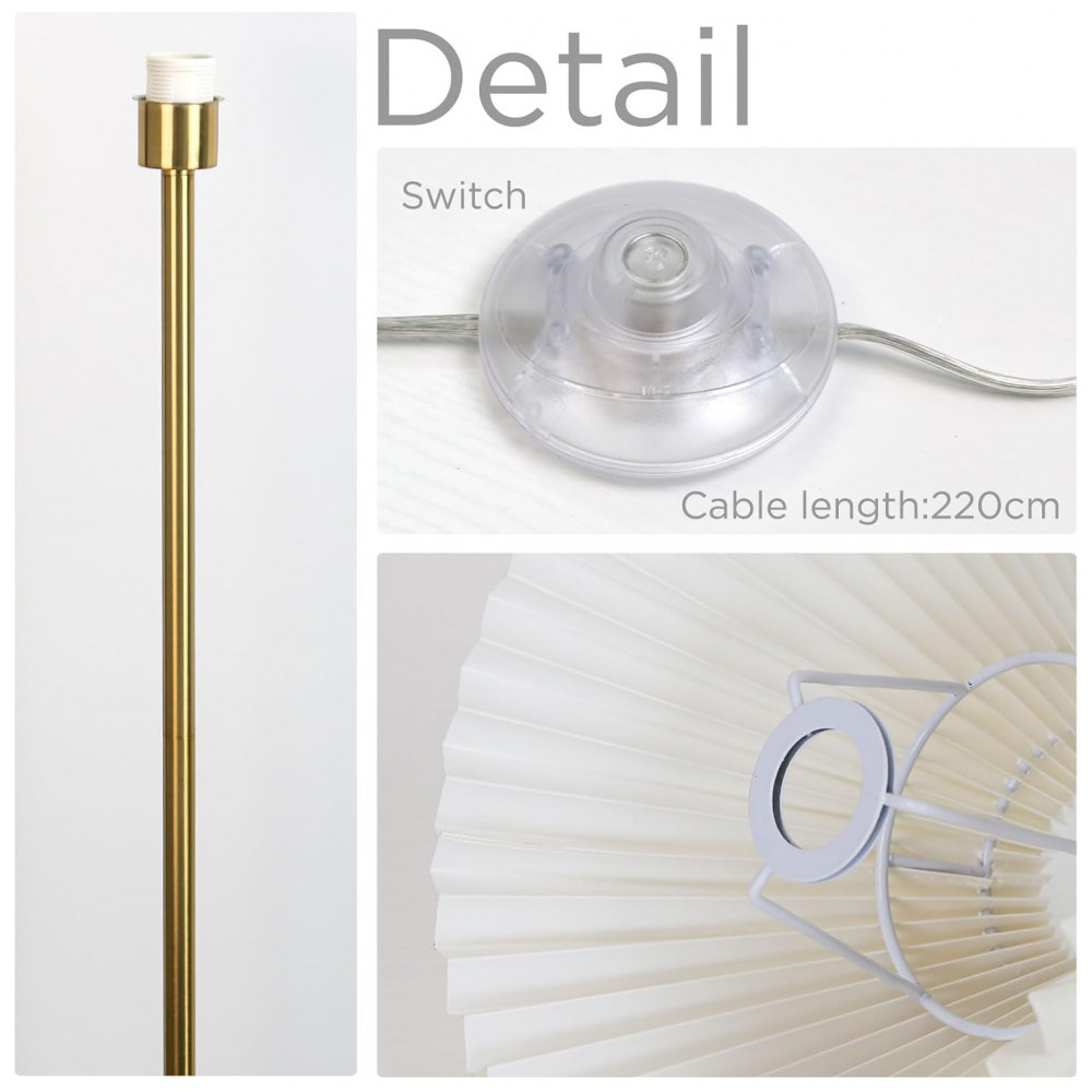 A luminária de chão KUNJOULAM combina design moderno e funcionalidade para transformar qualquer ambiente. Com 153 cm de altura, seu abajur plissado de tecido bege possui 45 cm de diâmetro e 24 cm de altura, proporcionando iluminação suave e elegante. A base metálica com acabamento dourado de 28 cm de diâmetro confere estabilidade e estilo, complementando a decoração da sua sala, quarto, escritório ou qualquer ambiente interno. Compatível com lâmpadas LED, CFL, halógenas ou incandescentes de até 60W (não inclusas), essa luminária é perfeita para criar um ambiente acolhedor e sofisticado. O ângulo do abajur é ajustável em 0°, 15° e 45°, permitindo direcionar a luz conforme sua necessidade. Com cabo elétrico e interruptor de botão, seu uso é prático e seguro. Esta peça charmosa e compacta é ideal para quem busca uma iluminação eficiente com um toque de estilo moderno e minimalista. Recomendamos o uso de lâmpadas com luz quente (3000K) para um ambiente ainda mais aconchegante, muito apreciado por jovens e adultos. Além disso, é uma excelente opção de presente. Seu cabo longo possibilita o uso em diversas cenas internas, como no quarto, escritório, sala de estar, quartos de hóspedes ou ao lado da cama como luminária de leitura.