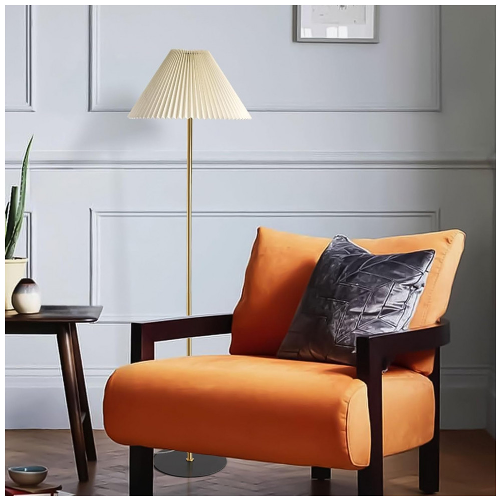 KUNJOULAM Luminária de Chão Moderna com Abajur Plissado Ajustável Base Dourada Ideal para Sala e Quarto