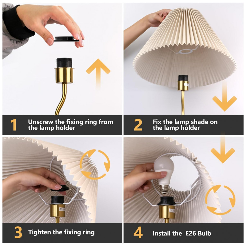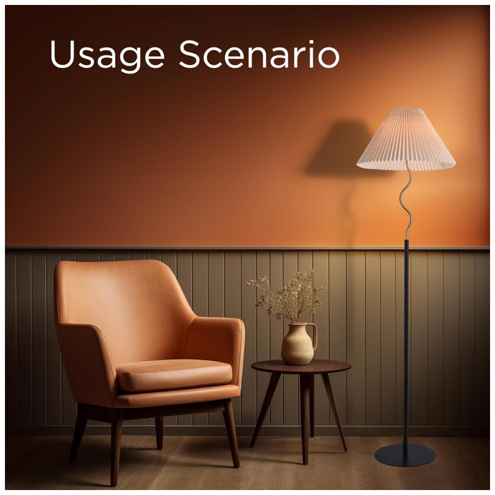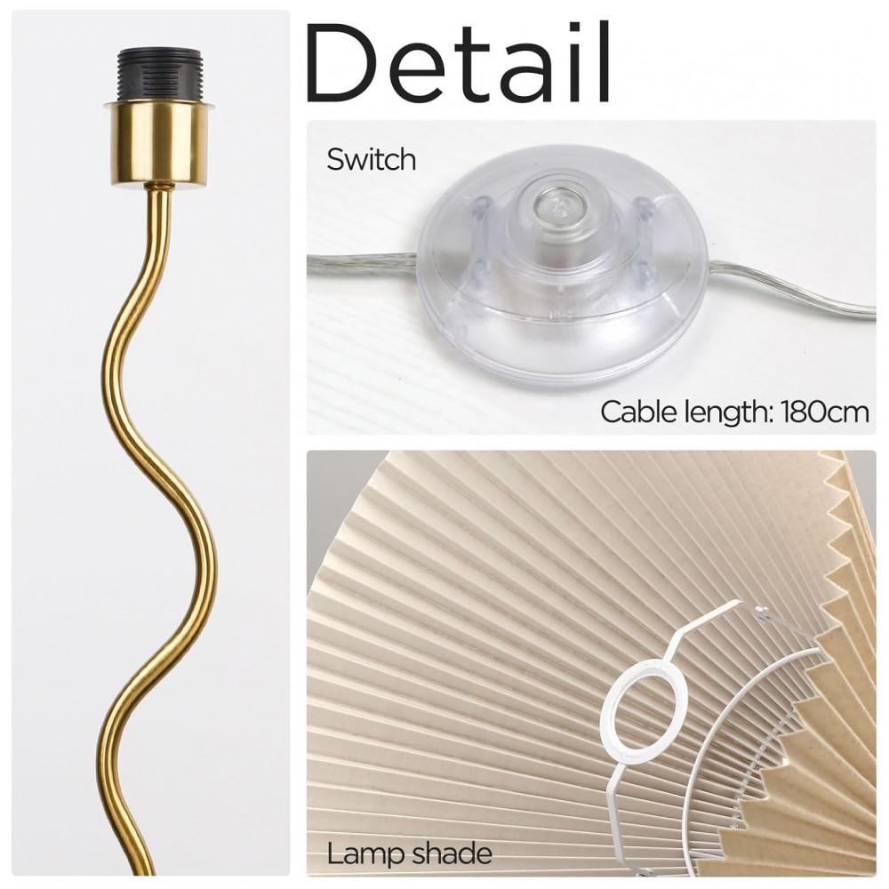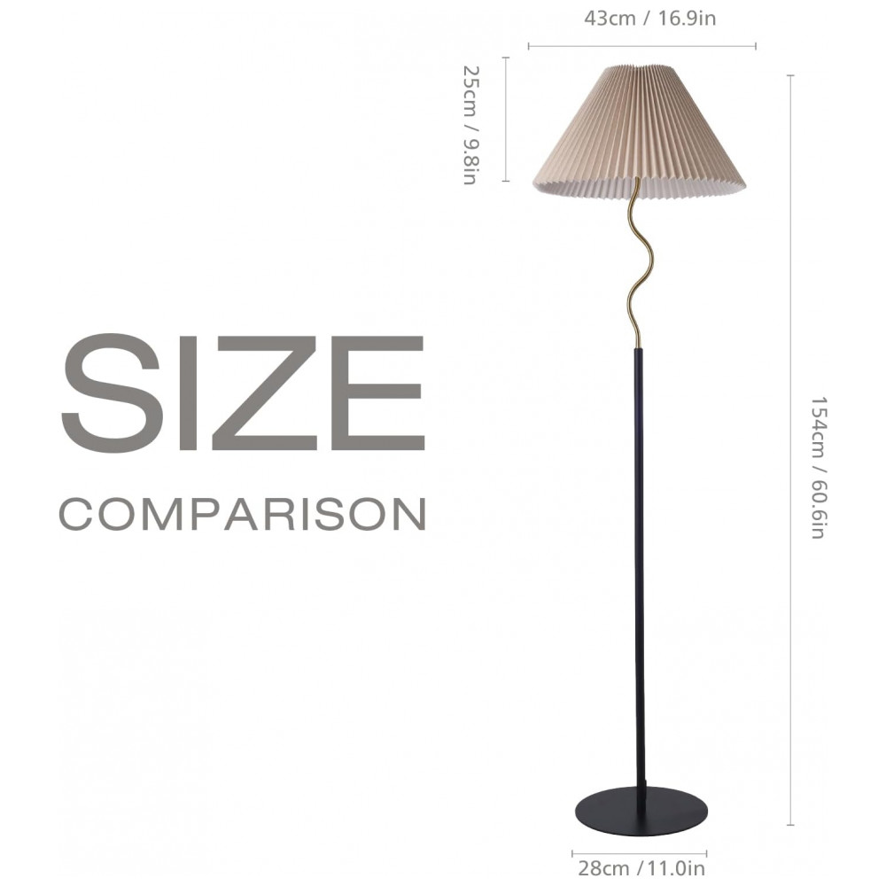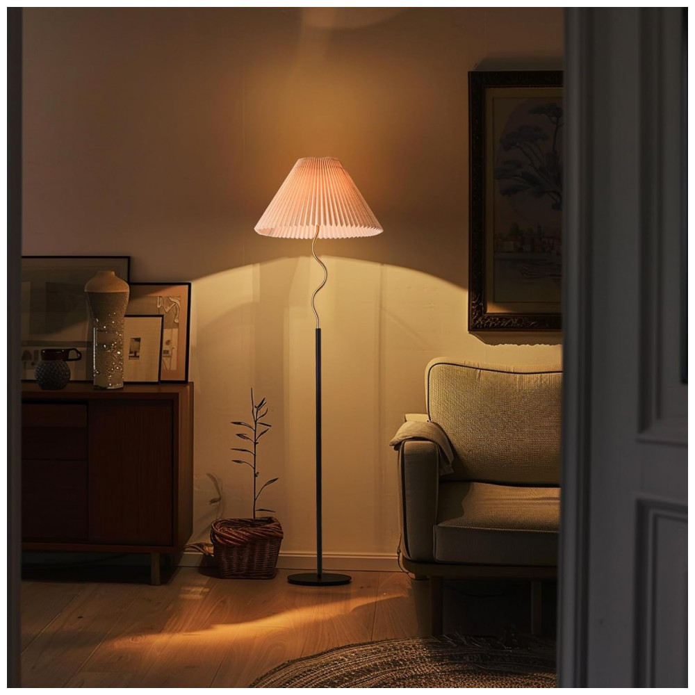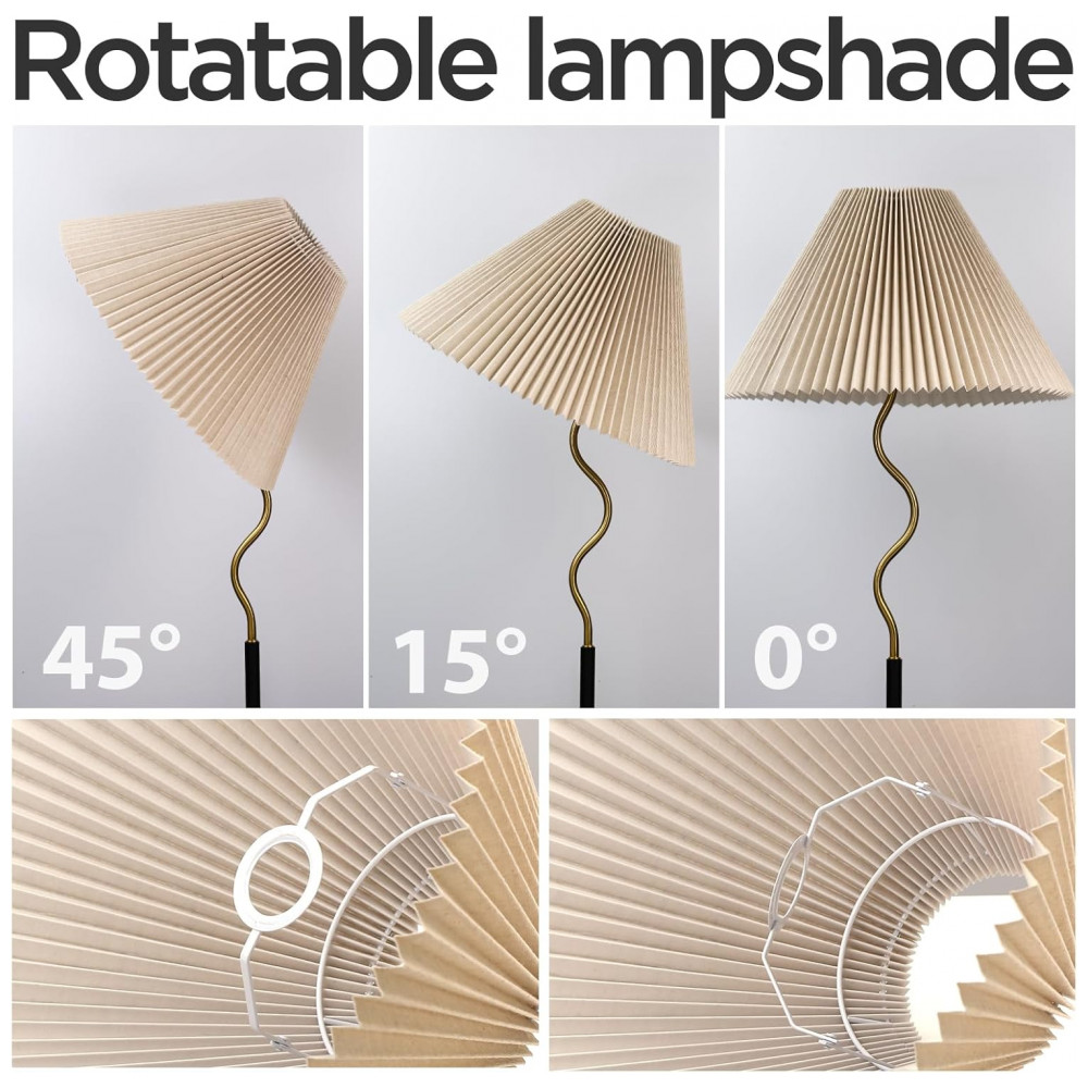 KUNJOULAM Luminária de Chão Moderna com Abajur Pregueado Ajustável Bege – Design Elegante para Sala e Quarto