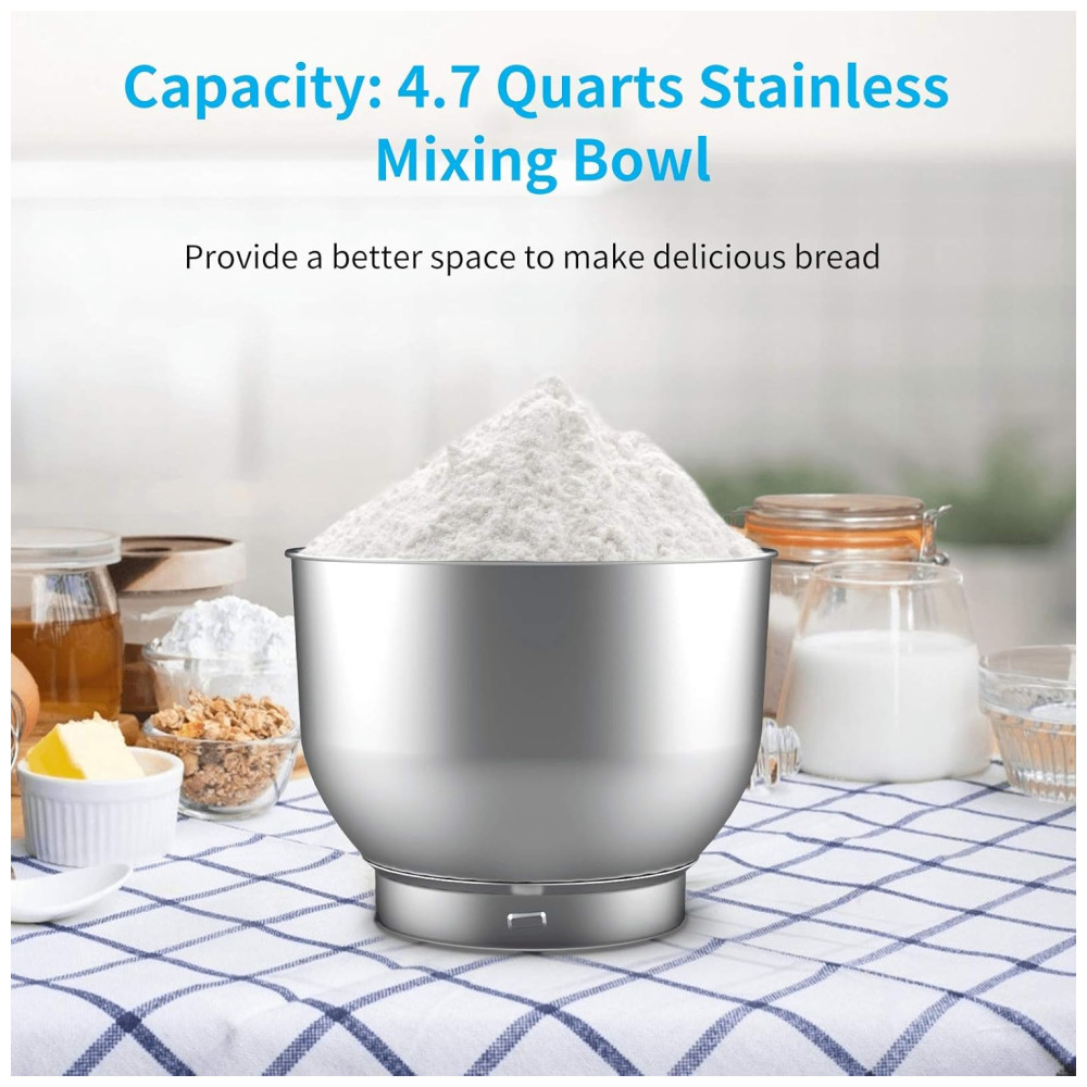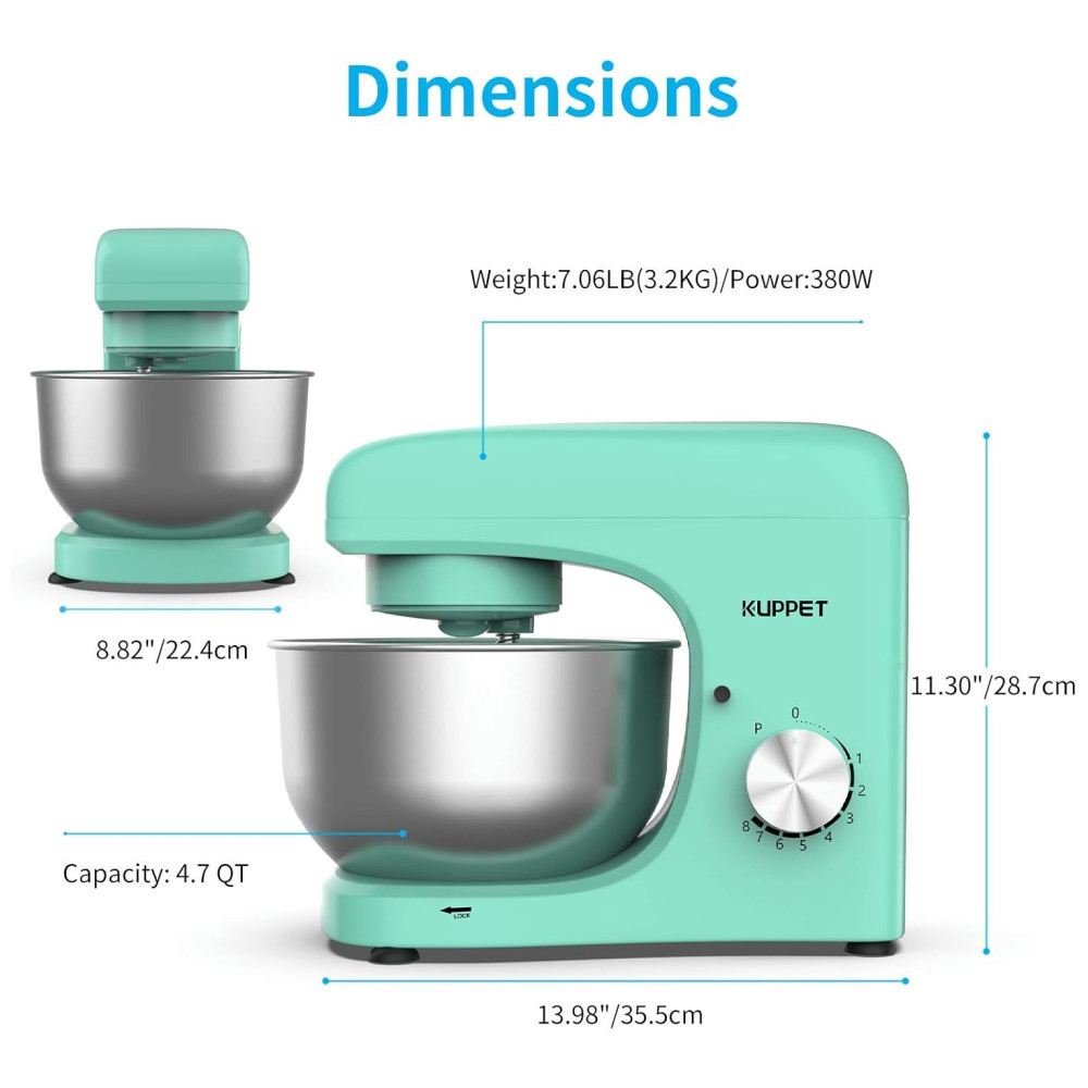 Voltagem 110V Potência da taxa 380W Frequência nominal 60Hz Capacidade da tigela 4,5 Litros Ruído 68 75DB dentro de 1M NW , GW 7,0 LBS , 8,8 . Misturador de mesa para cozinha A batedeira KUPPET é o seu ajudante perfeito na cozinha. Possui 8 velocidades de operação, juntamente com 380 W de potência e 3 diferentes ganchos de massa, que podem ser combinados para atender às suas diversas necessidades de cozimento. Tigelas, escudos contra respingos e acessórios são s para máquinas de lavar louça e, portanto, fáceis de limpar rapidamente. Tigela de aço inoxidável de 4.5L 8 velocidades contínuas com função de pulso Luz indicadora de LED ao redor do botão de velocidade Engrenagens sem fim Estrutura de transmissão Nível de baixo ruído 68 75Db Dentro de 1M de pés de borracha antiderrapante. Projeto da cabeça de inclinação, o misturador de suporte de cabeça inclinada não só fornece acesso fácil a a tigela e o mixer conectado, mas também facilita a instalação e remoção da tigela de aço inoxidável e 3 acessórios. Tigela de aço inoxidável A tigela de aço inoxidável oferece capacidade suficiente para misturar massa para 6 dúzias de biscoitos, 3 pães ou 3kg de purê de batata em um único lote. 8 velocidades poderosas o suficiente para quase qualquer tarefa ou receita, seja misturando ingredientes úmidos e secos, amassando massa de pão ou chantilly. Chicote de arame nível 6 8 Tempo de batedura 3 10min