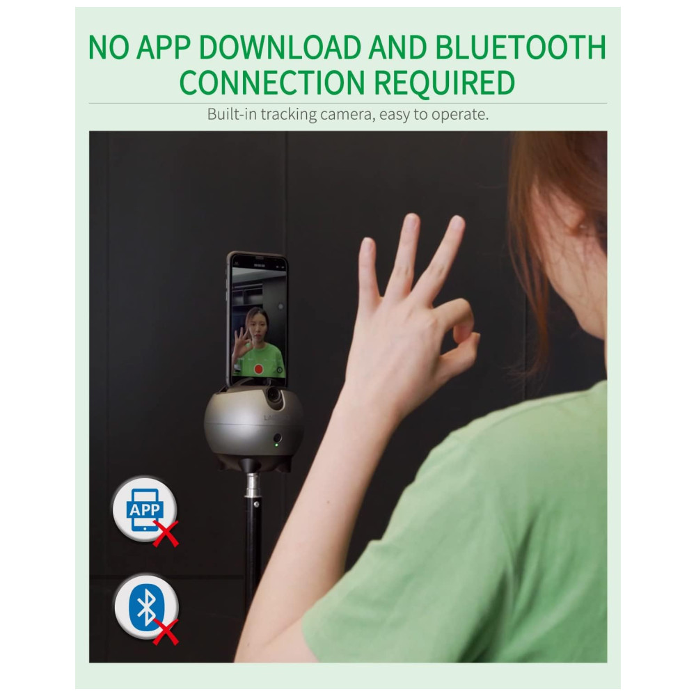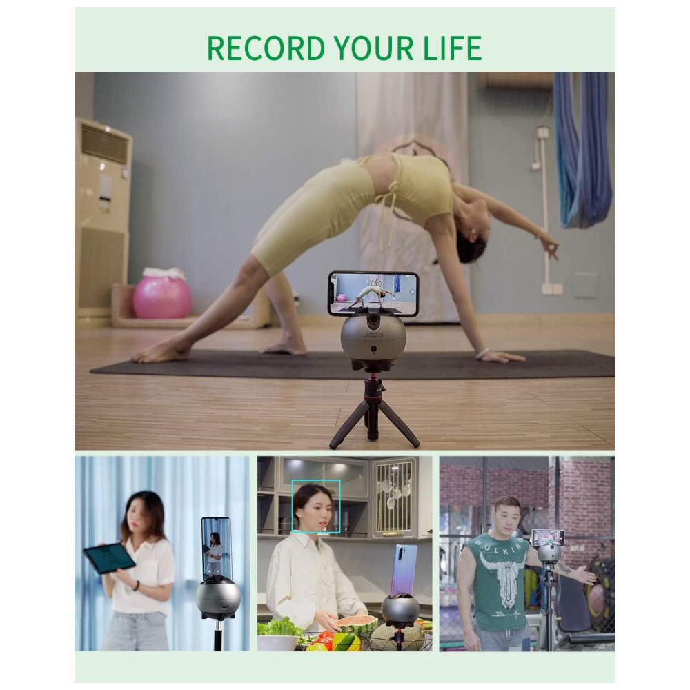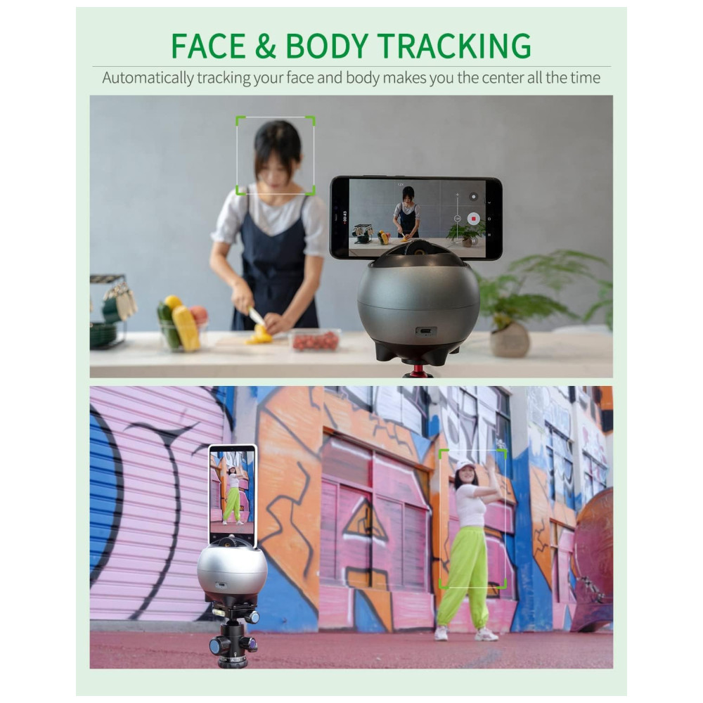 Rastreamento automático de rotação de 360 O suporte de rastreamento inteligente pode reconhecer rosto , corpo e girar automaticamente em 360 com seu movimento para rastrear e fotografar objetos em tempo real, tornando você o centro o tempo todo.