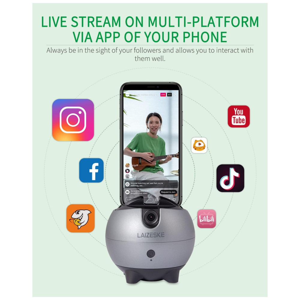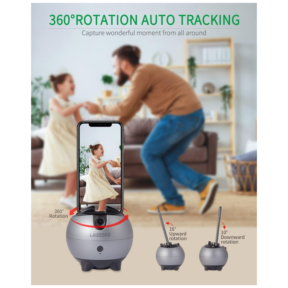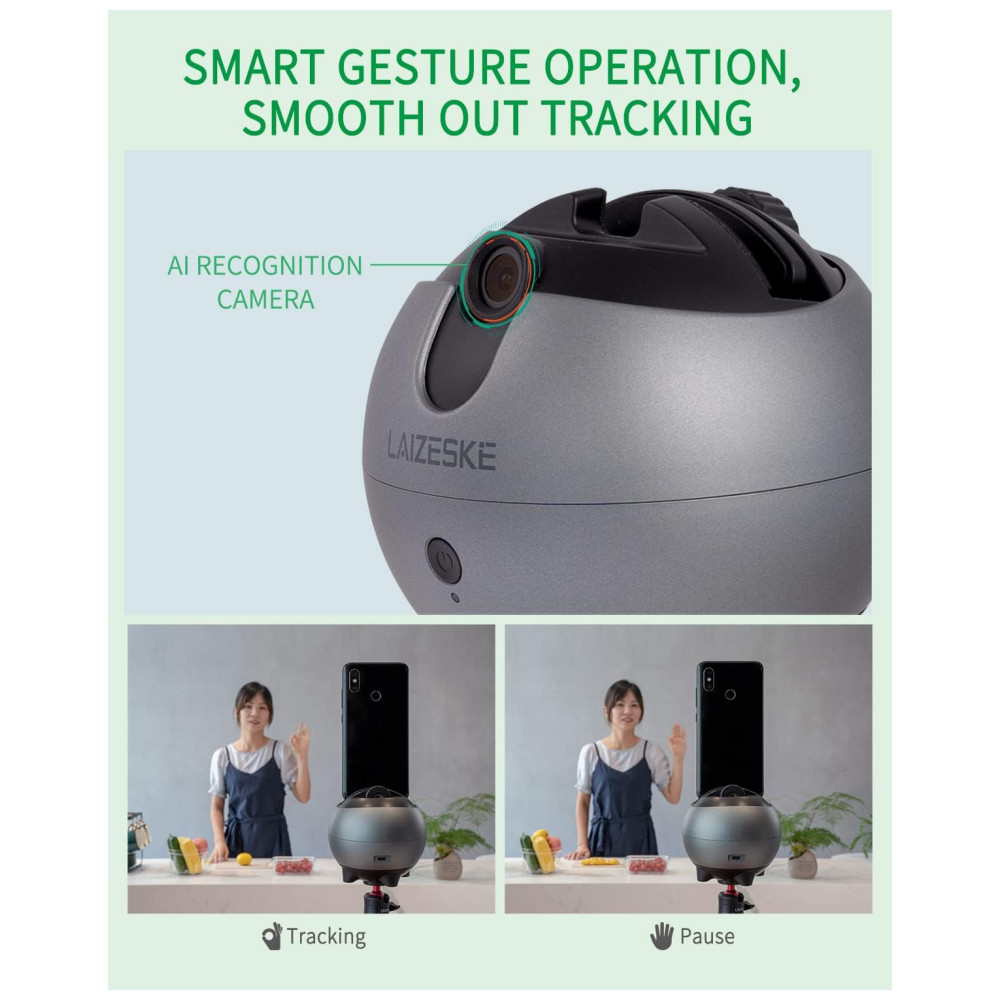 LA8 Suporte para Celular com Rastreamento de Rosto 360 Automático LAIZESKE Cinza