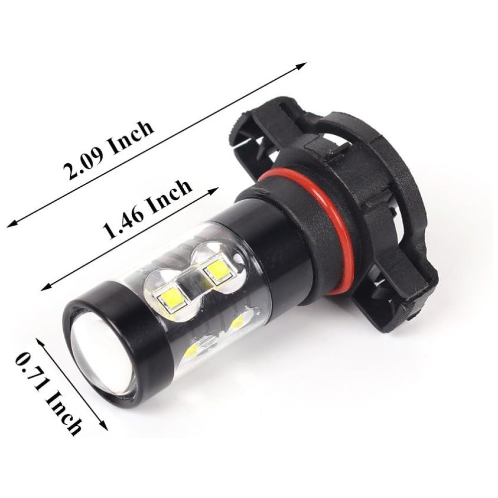 Chips de LED 10pcs de alto desempenho e alta potência 5W SMD por 5201 5202 lâmpadas LED. Cada lâmpada LED 5201 5202 tem cerca de 1200 lúmens, total de 2400 lumens para ambas as lâmpadas LED PS19W 5202. Plug n Play, instalação fácil para a maioria dos veículos. Impermeável IP67 Cor branco xenônio 6000K Alimentado por tecnologia avançada de circuitos LED brilhantes Tensão de trabalho 12V 24V Potência de trabalho 8W, não 50W Aplicação usada para atualizar o estoque Sylvania ou Philips halogênio 12085 PS24W, carros automóveis, caminhões 5202 lâmpadas de neblina ou lâmpada de luz de circulação diurna 5201 DRL para muito mais brilho e condução mais segura em dias de chuva, neblina ou neve. Número de referência cruzada PS24W, 5202, 5201, 9009, PS19W, 12085LLC1, 12085,12086, PS24WFF, versão antiga H16 Tipo 1 modelo europeu. Antes de adquirir consulte um eletricista de sua confiança