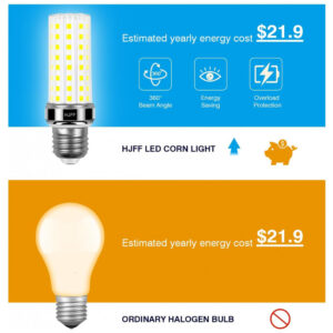Economize dinheiro com as lâmpadas de milho LED de 20W, poupando 85% em suas contas de energia ao substituir a lâmpada incandescente de 100W. Com potência ultra alta de até 2500 lumens e ângulo de feixe de 360 graus, oferecem uma luz mais brilhante e agradavelmente branca, uma alternativa perfeita às lâmpadas incandescentes. Possui design com casca de plástico, à prova d’água (IP67), à prova de poeira e antiembaçante. Amigáveis ao meio ambiente, sem chumbo, mercúrio, raios UV ou IR. Ligue e use instantaneamente, sem cintilação, zumbido ou atraso, proporcionando cores naturais e vividas para o máximo conforto visual. Amplamente utilizadas em diversas áreas como salas, quartos, banheiros, escritórios, entre outros.