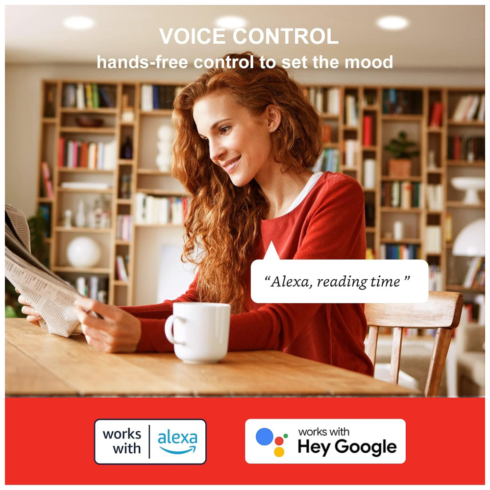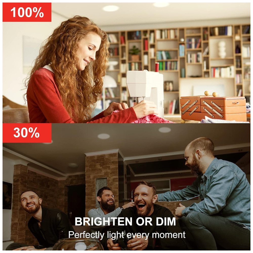 Controle de voz Alexa Lâmpadas inteligentes BR30 selecionadas que funcionam com alexa e Google Assistant, você só precisa enviar comandos de voz para ligar, desligar a luz ou definir a lâmpada alexa para o brilho certo para criar uma atmosfera relaxante e confortável. por exemplo, Alexa, diminua as luzes da sala em 20.