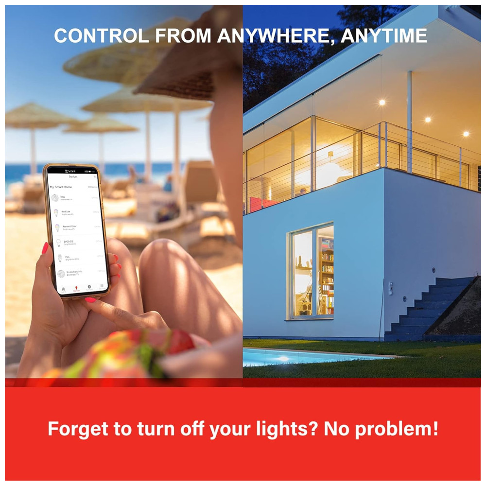 Nenhum hub ou hardware extra necessário.Lâmpadas inteligentes podem se conectar facilmente à rede WiFi de 2,4 GHz da sua casa. Luz de inundação inteligente, o primeiro passo para iniciar uma casa totalmente inteligente. Nota 5 GHz não é suportado.