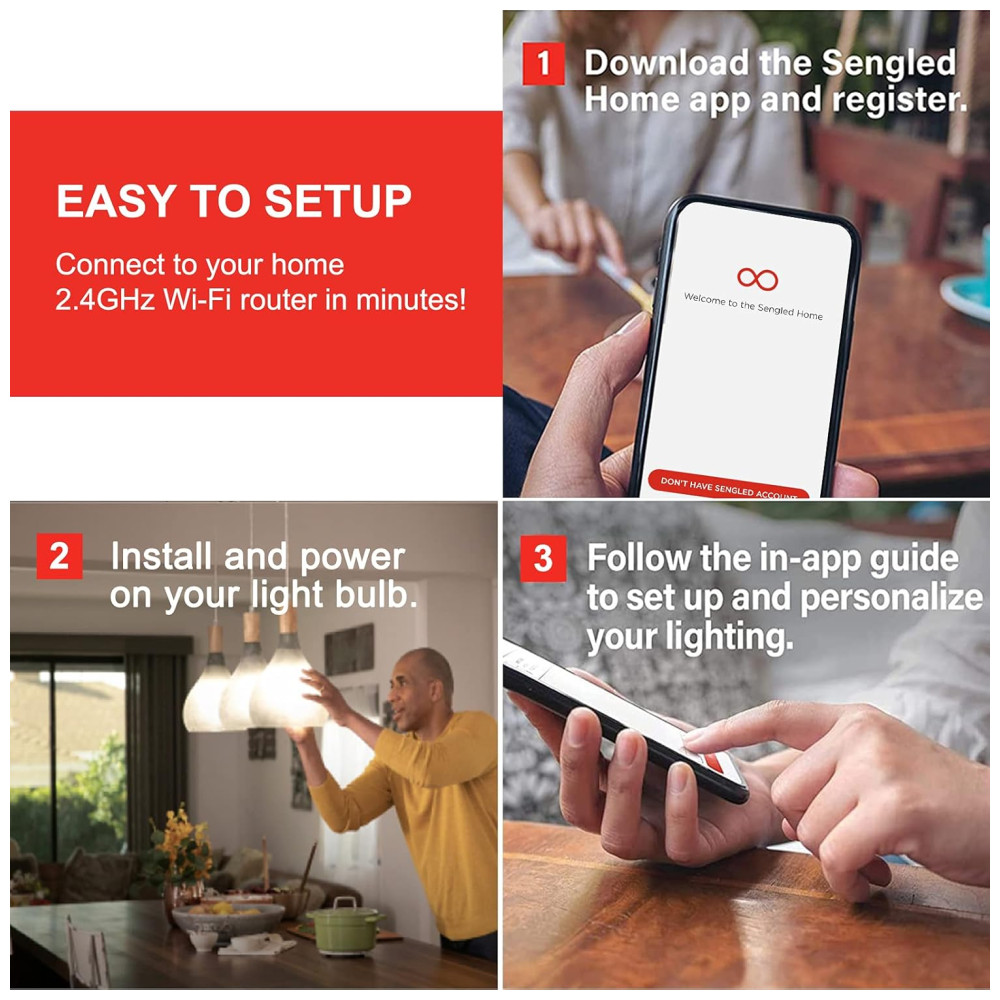 Controle Remoto Controle sua iluminação de qualquer lugar. Mesmo se você não estiver em casa, você também pode controlar remotamente sua lâmpada inteligente LED BR30 ligar, desligar diretamente pelo aplicativo do telefone. Sengled wifi smart bulb BR30 2700K, fornece 650 lumens de luz branca suave.