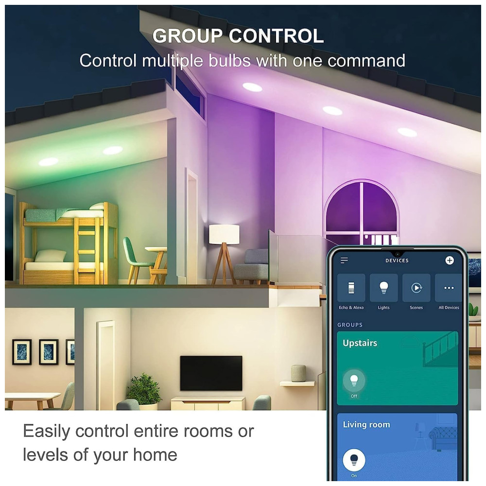 Controle de voz com lâmpada de mudança de cor Alexa Sengled br30 fornece energia equivalente a até 65W para atender a maioria dos cenários de sua vida, como ambientes internos, quartos, salas de estar, cozinhas, corredores, etc. desligado ou ajuste o brilho da lâmpada Alexa.