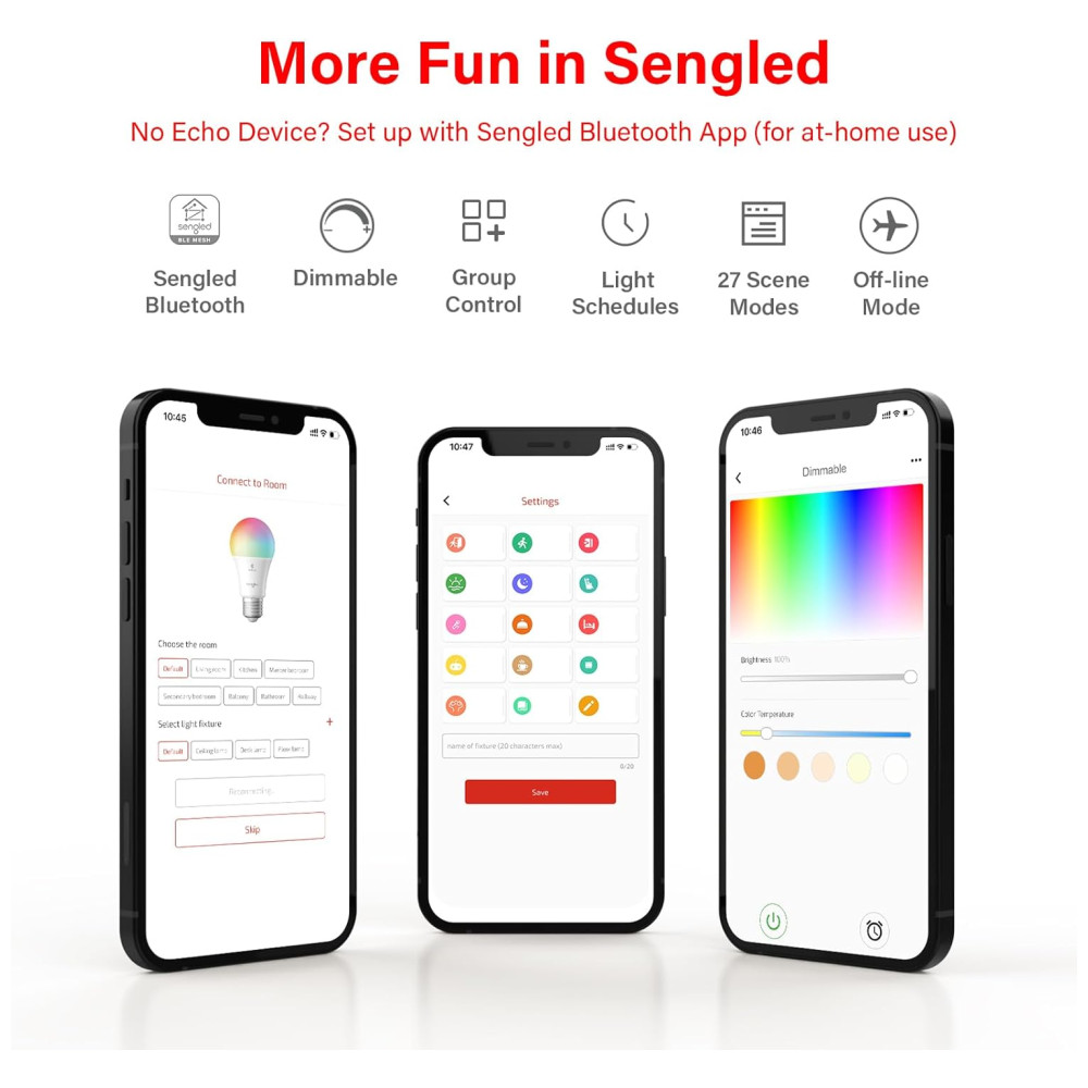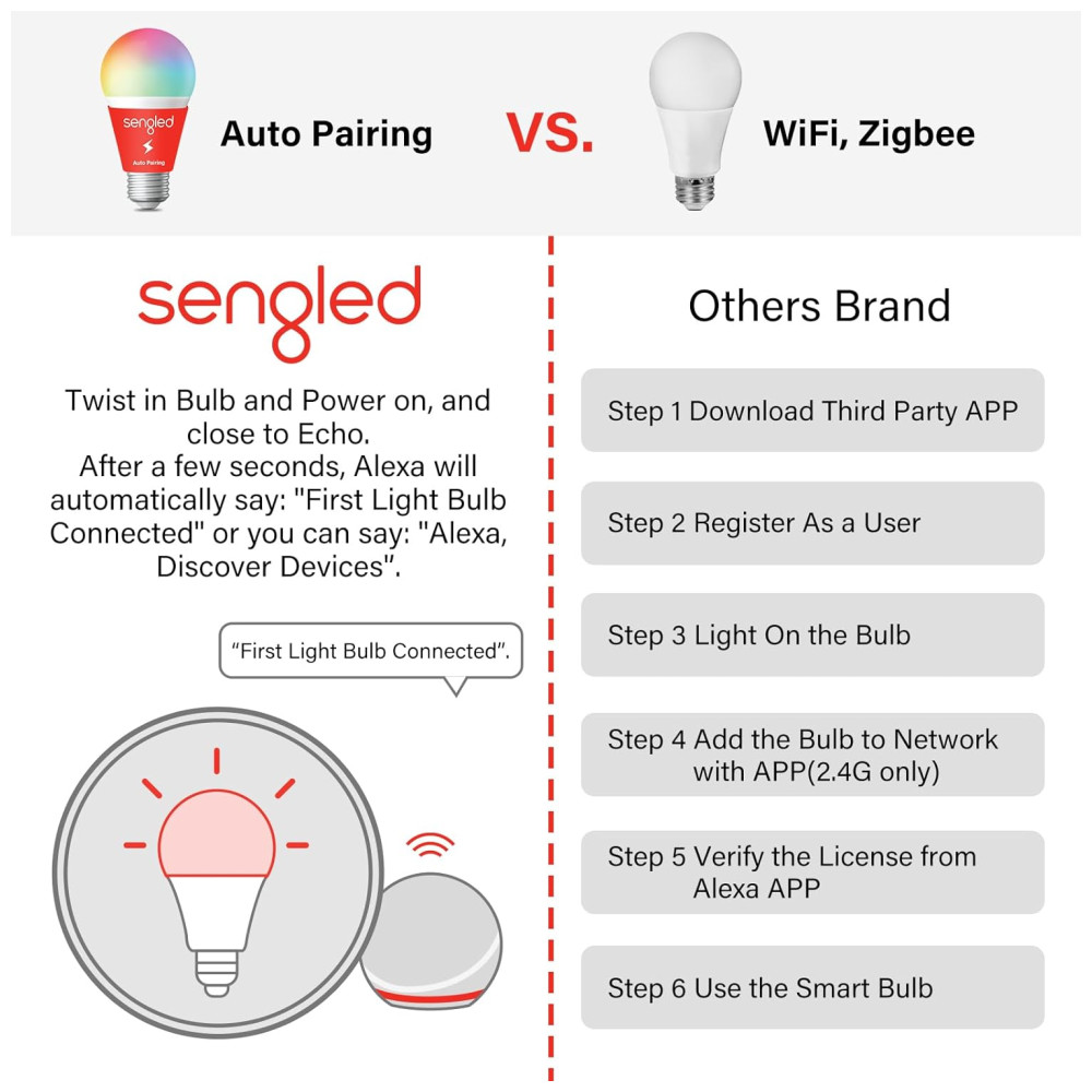 Comece em segundos configuração Plug n Play ultra simples. Basta girar as lâmpadas inteligentes Sengled e começar a desfrutar com os dispositivos inteligentes Alexa em segundos é necessária a vinculação automática à conta Alexa.