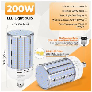 Lâmpada LED Corn XYCN de 200W 2 Pack 29.500LM Branco Quente 3000K Equivalente a 2000W Base Mogul E26/E39 para Ambientes Internos e Externos